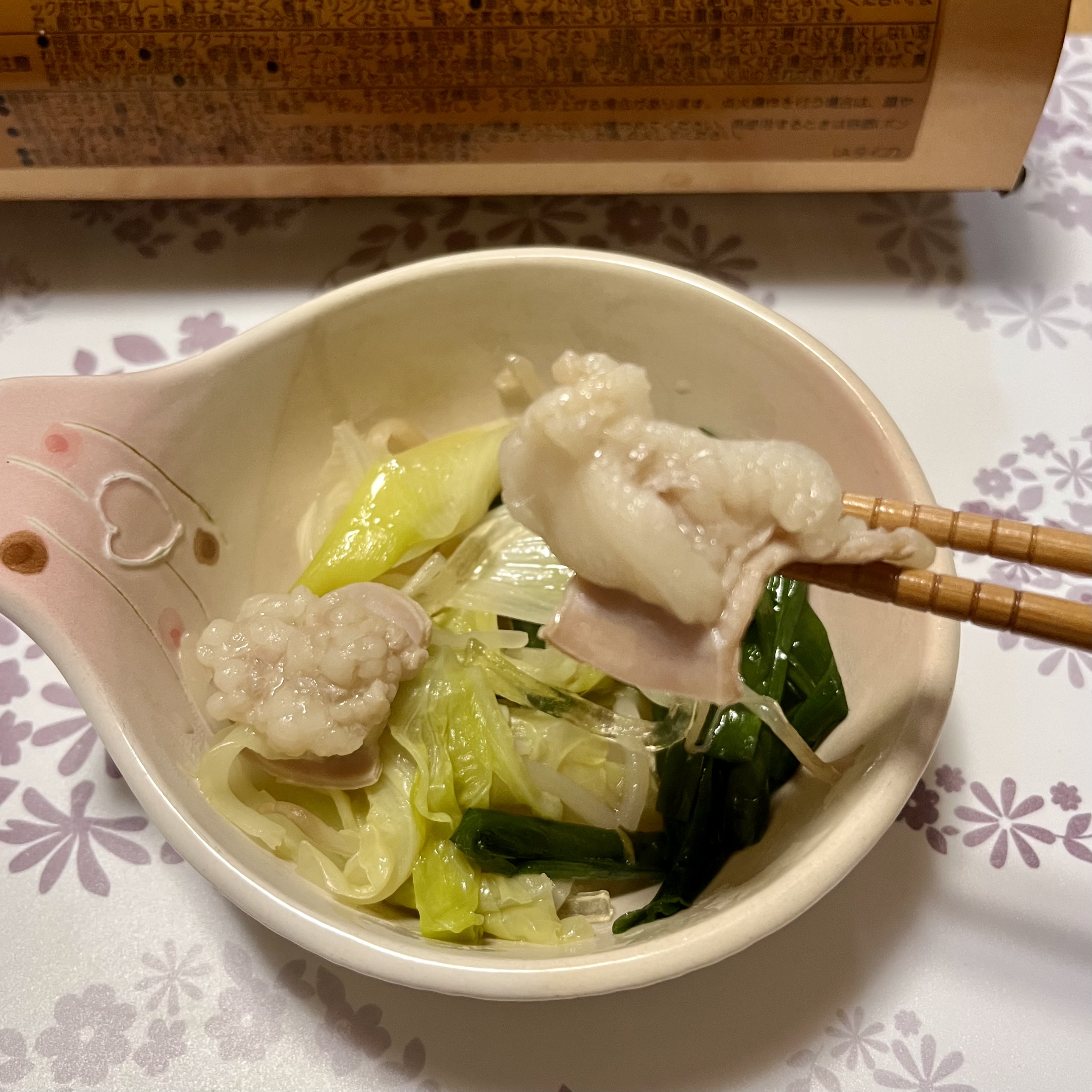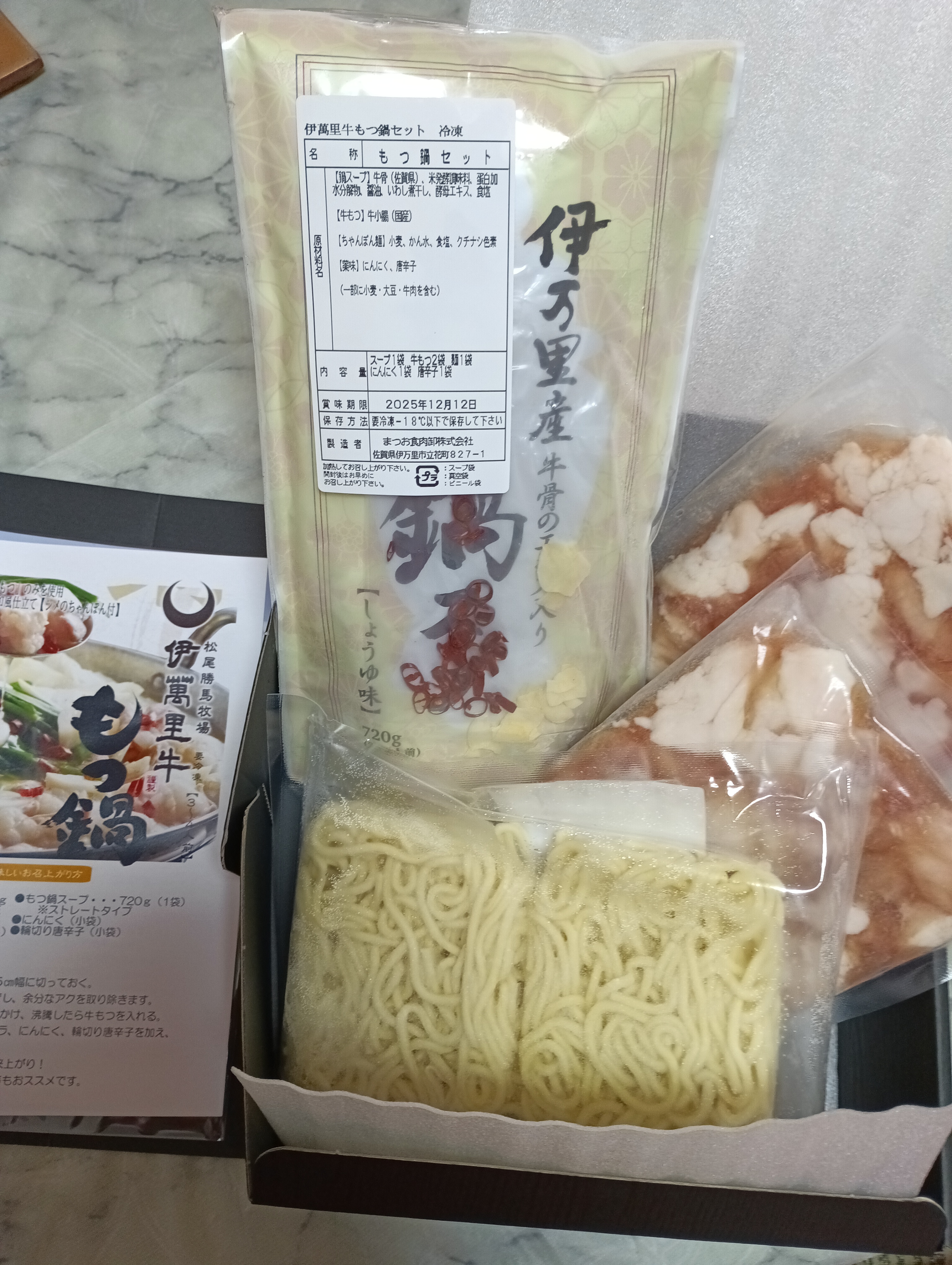 あとは、キャベツやニラを準備するだけで美味しいもつ鍋が作れるセット商品になっています。
