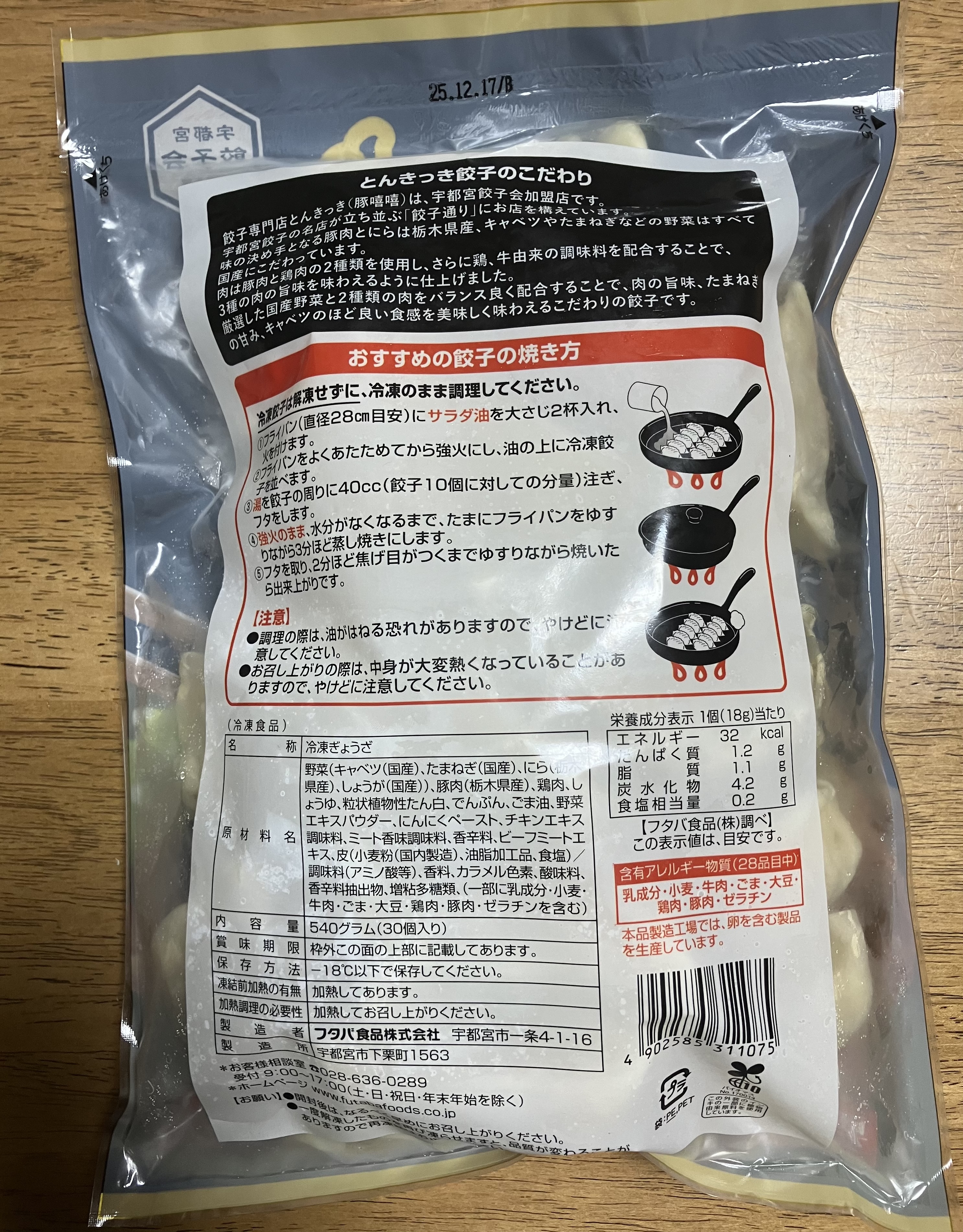 宇都宮餃子会加盟店とんきっきの餃子をご家庭で手軽にお召し上がりいただける商品です。焼き餃子・水餃子・揚げ餃子などお好みの調理方法でお楽しみいただけます。