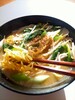 麺がゆで上がりましたらお湯をよく切って丼に移し、(2)のスープを丼にそそぎ、 お好みの具を乗せてお召し上がりください。