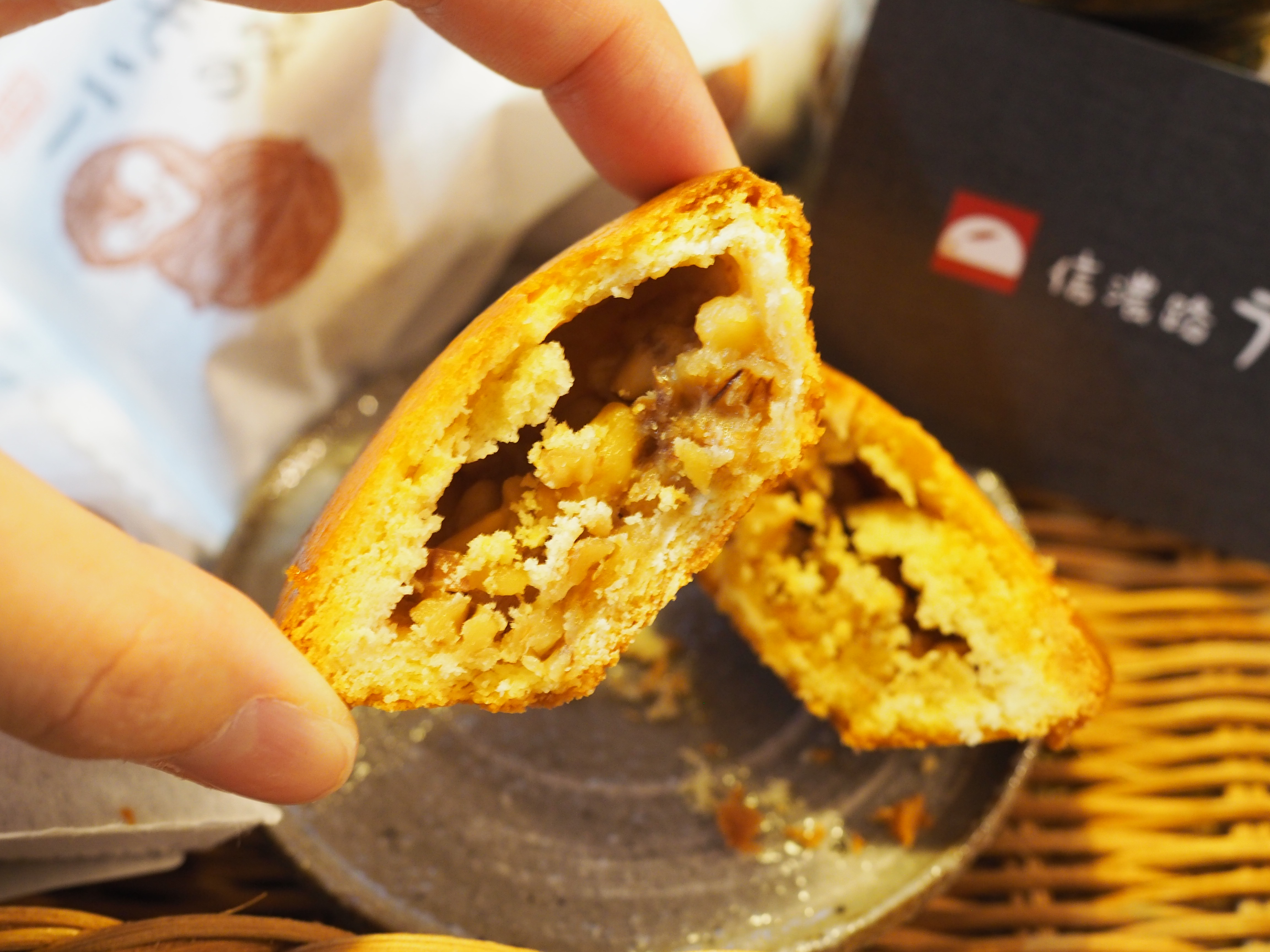 少し固めに焼き上げたクッキー生地の中に、キャラメルクリームとくるみが詰まっているので、食べごたえもしっかりあり、2 つの異なる食感のバランスも良いです。