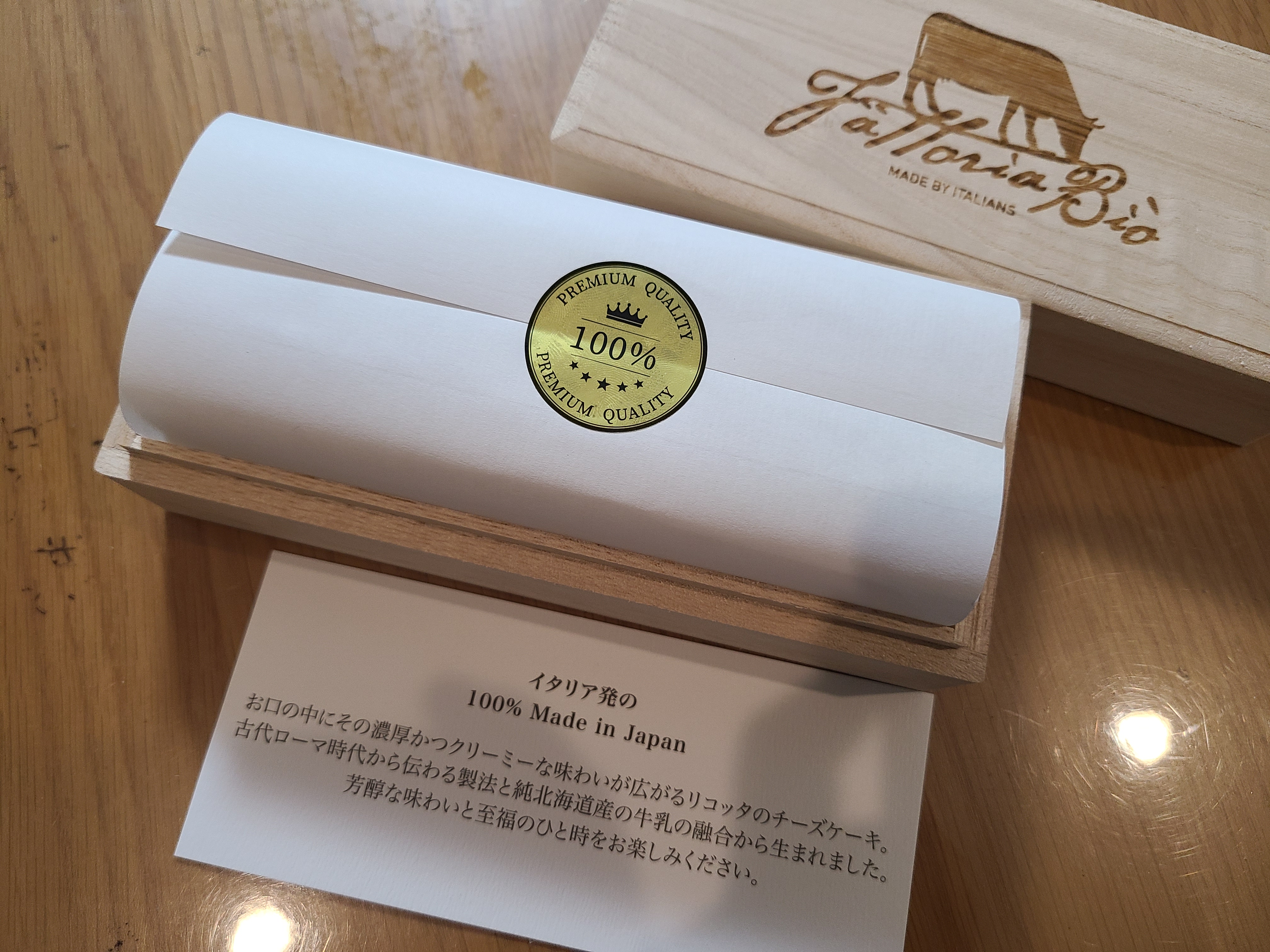 受賞歴のあるリコッタチーズで作る数量限定の「チーズケーキ」です。北海道牛乳でイタリアンチーズを作る「ファットリアビオ北海道」とイタリア政府認定の老舗イタリアン「エリオ・ロカンダ・イタリアーナ」のタッグによって生まれました。日本の食材の豊かさを込めて、乳製品は北海道、他の全ての素材も国産にこだわっています。リコッタチーズの滑らかさと、北海道のクリーミーな味わいを存分に味えます。小麦不使用のグルテンフリー商品。お洒落なウッドボックスに入って届くので、贈り物にもおすすめです。