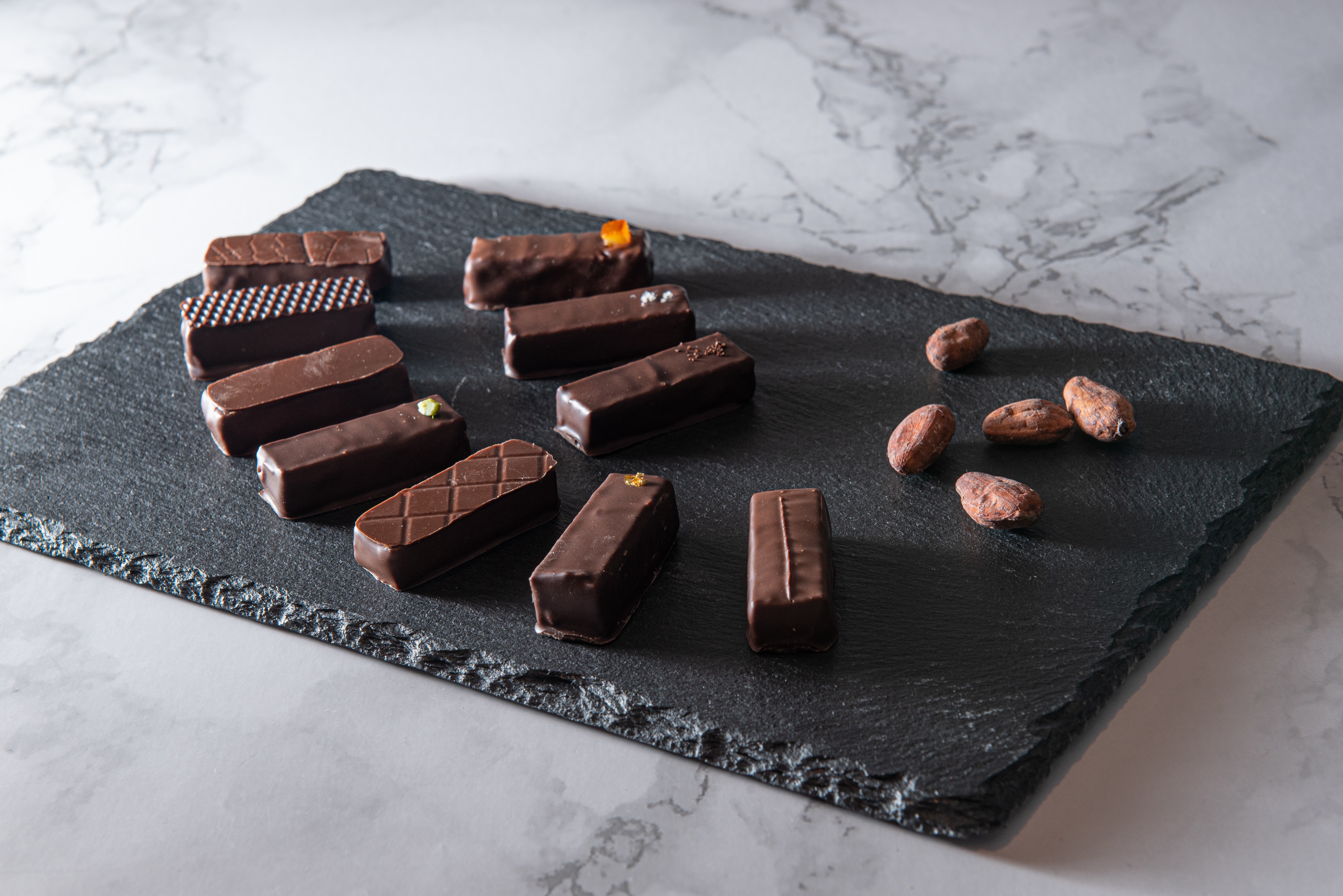 Chocolaterie4の”ボンボンショコラ”は、チョコレートと素材の掛け合わせによる香りや味の変化をお楽しみいただけるよう、何度も試作を重ね完成した、当店のこだわりが詰まったチョコレートスイーツです。チョコレート職人が厳選した素材を活かした10種類のフレーバーをご用意しております。10種類のボンボンショコラは、1種類の素材を存分に楽しめるショコラだけではなく、2種類以上の素材を使用し、チョコレートと各素材同士が起こすマリアージュや変化をお楽しみいただけるショコラも展開しております。