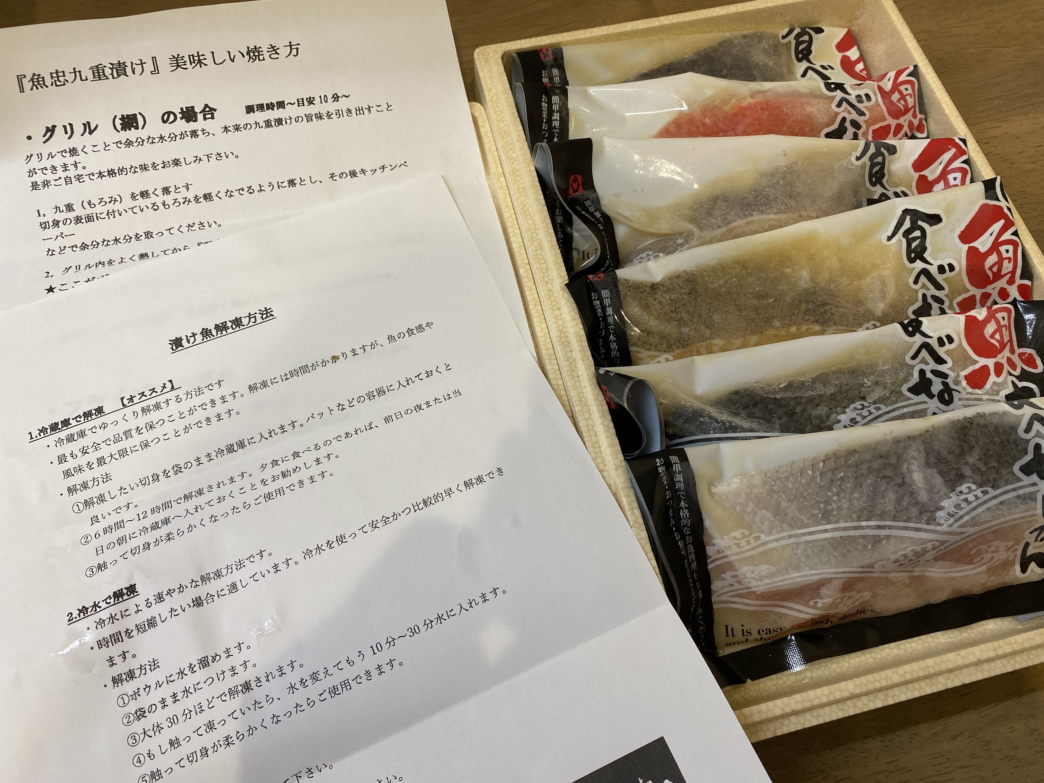 調理法の説明の用紙も同封されており、お魚はトースターやフライパンで焼くだけで食べられるので調理も簡単で時間短縮にはピッタリです。