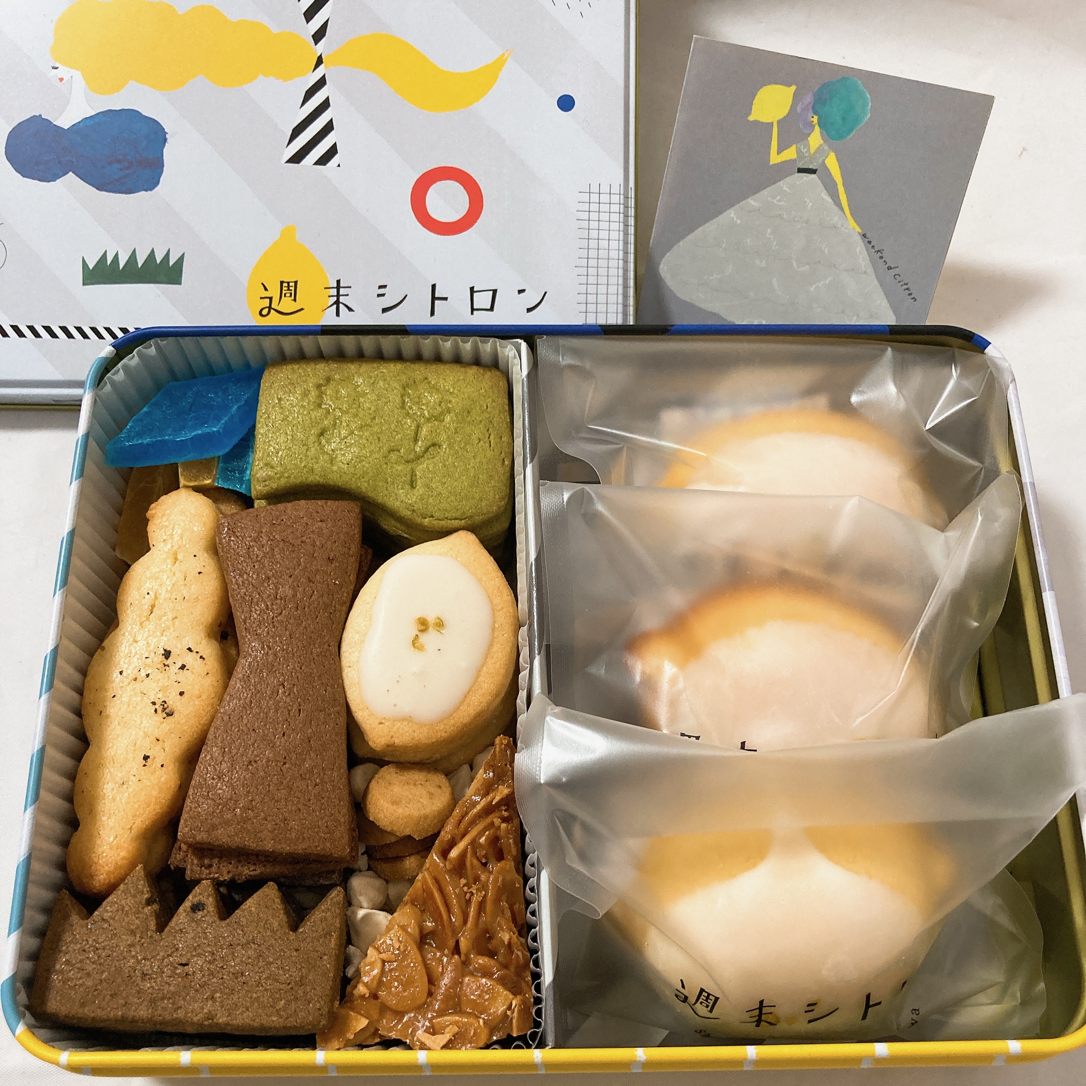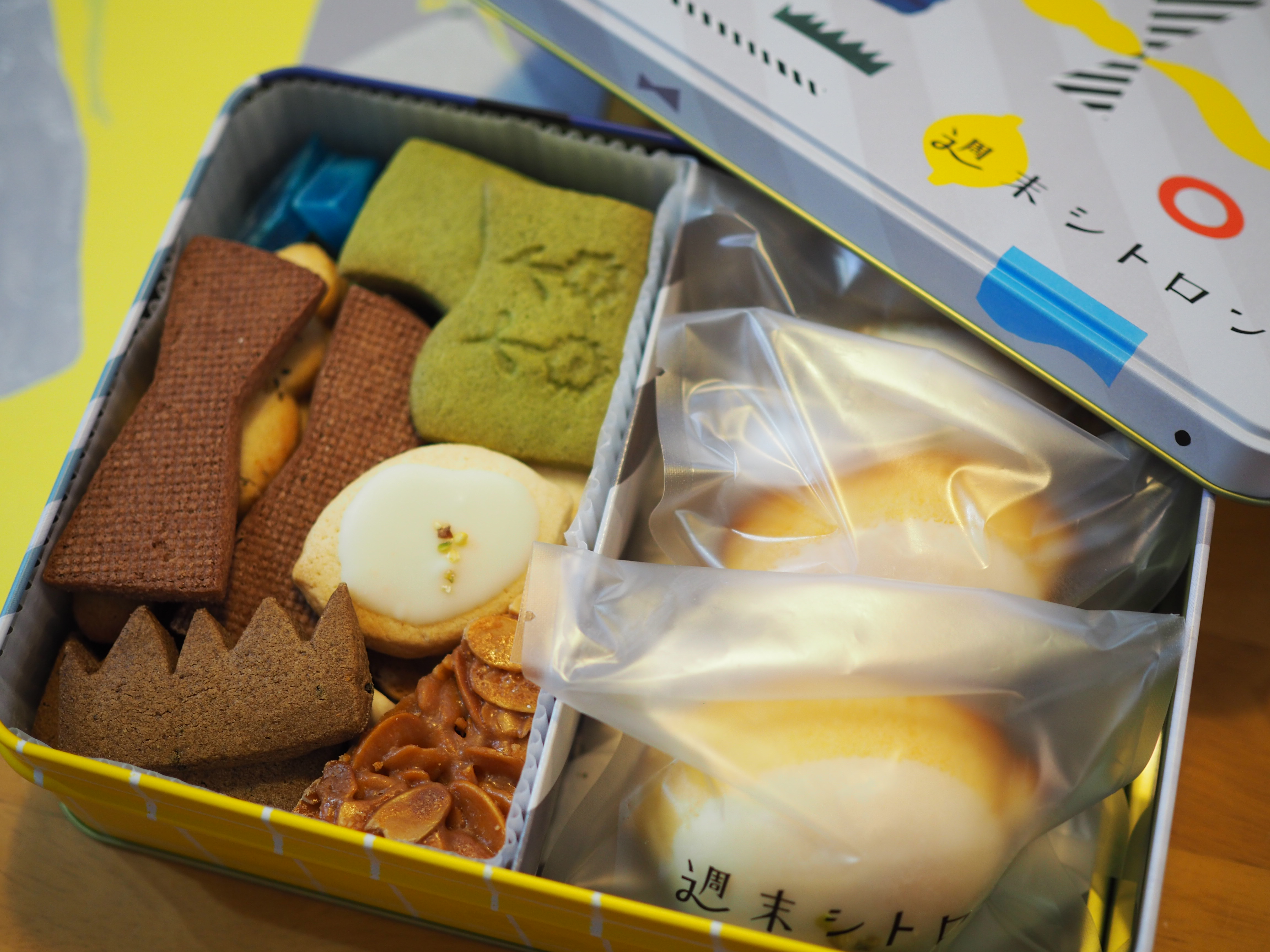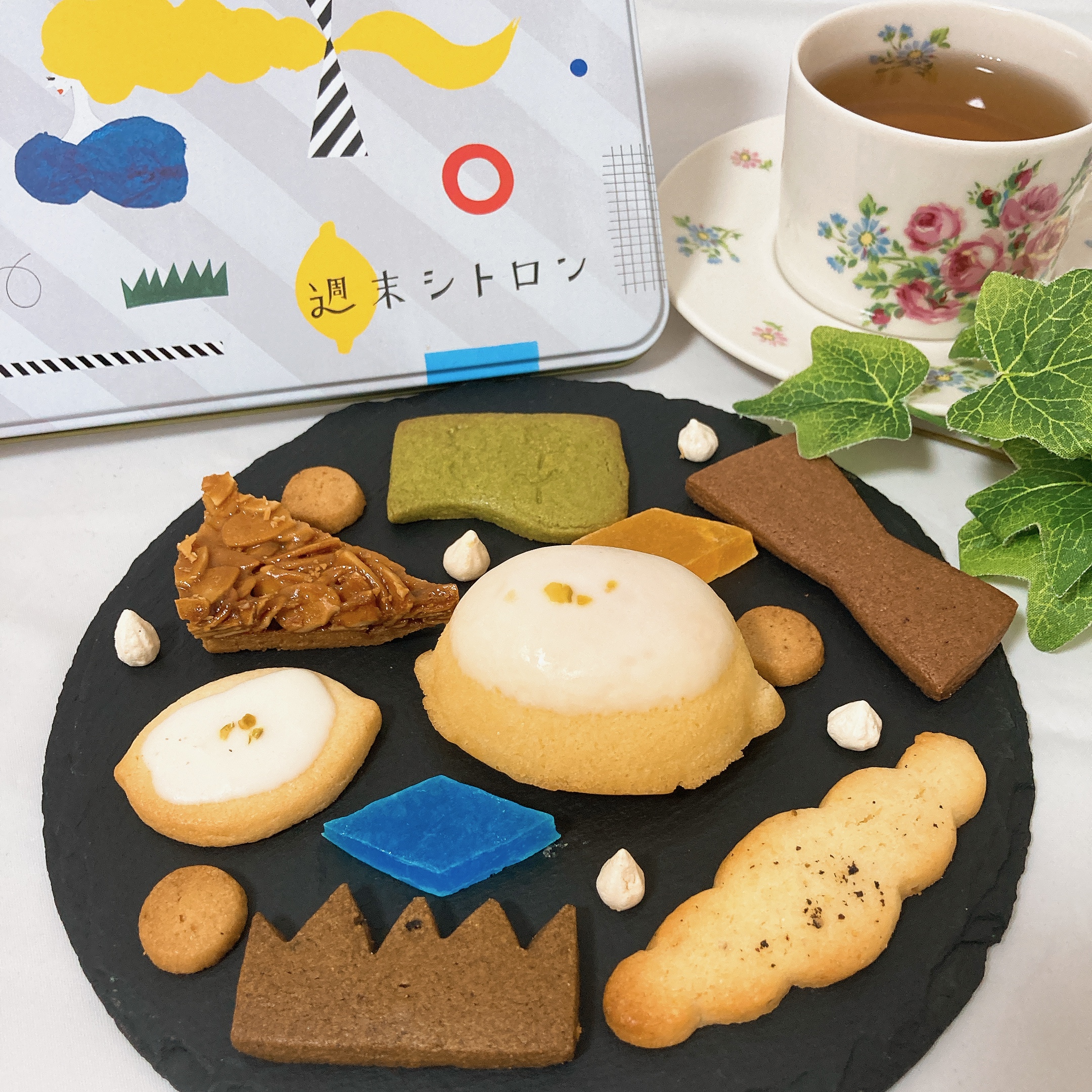 レモンケーキや焼菓子などが一緒に楽しめるクッキー缶です。クッキーは、バターをたっぷり使ったサブレ生地です。チャイやココアなどの甘い味だけでなく、チーズや山椒醤油などおつまみになるしょっぱい味も入っているので、最後まで飽きずに楽しめます。レモンケーキ(週末シトロン)は、しっとり食感に焼き上げた生地に、レモンを感じる香り豊かなチョコレートコーティングを施しています。他にもフロランタンや琥珀糖などが入っています。可愛いイラスト入りのクッキー缶に入って届くので、手土産スイーツとしてもおすすめです。
