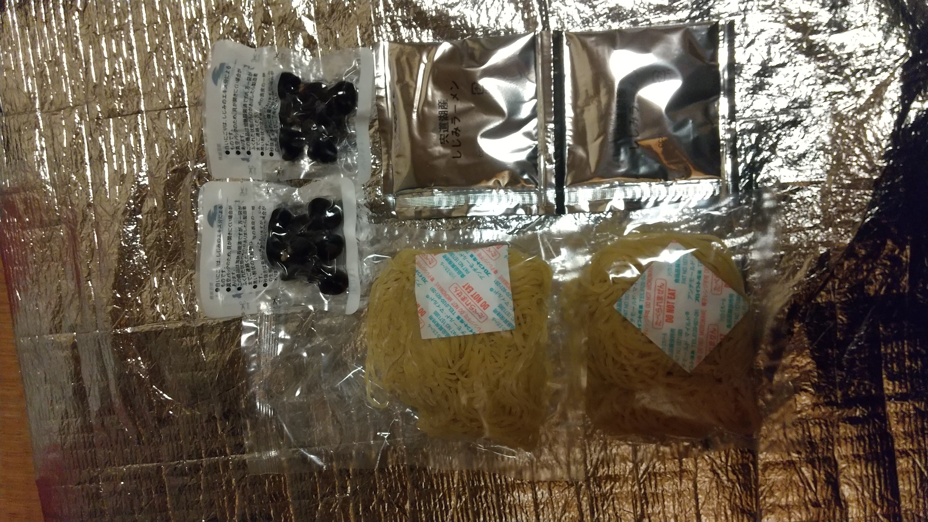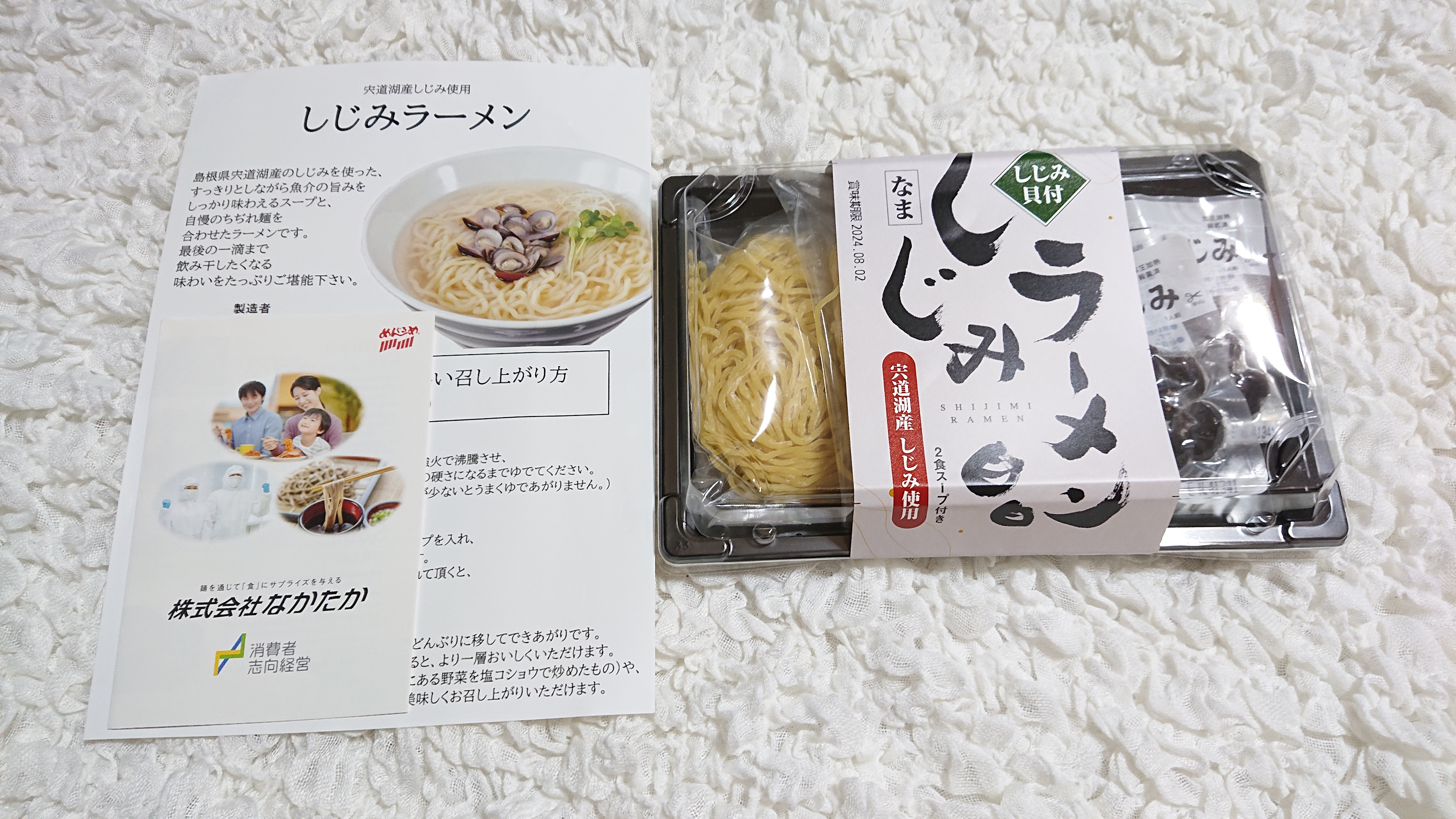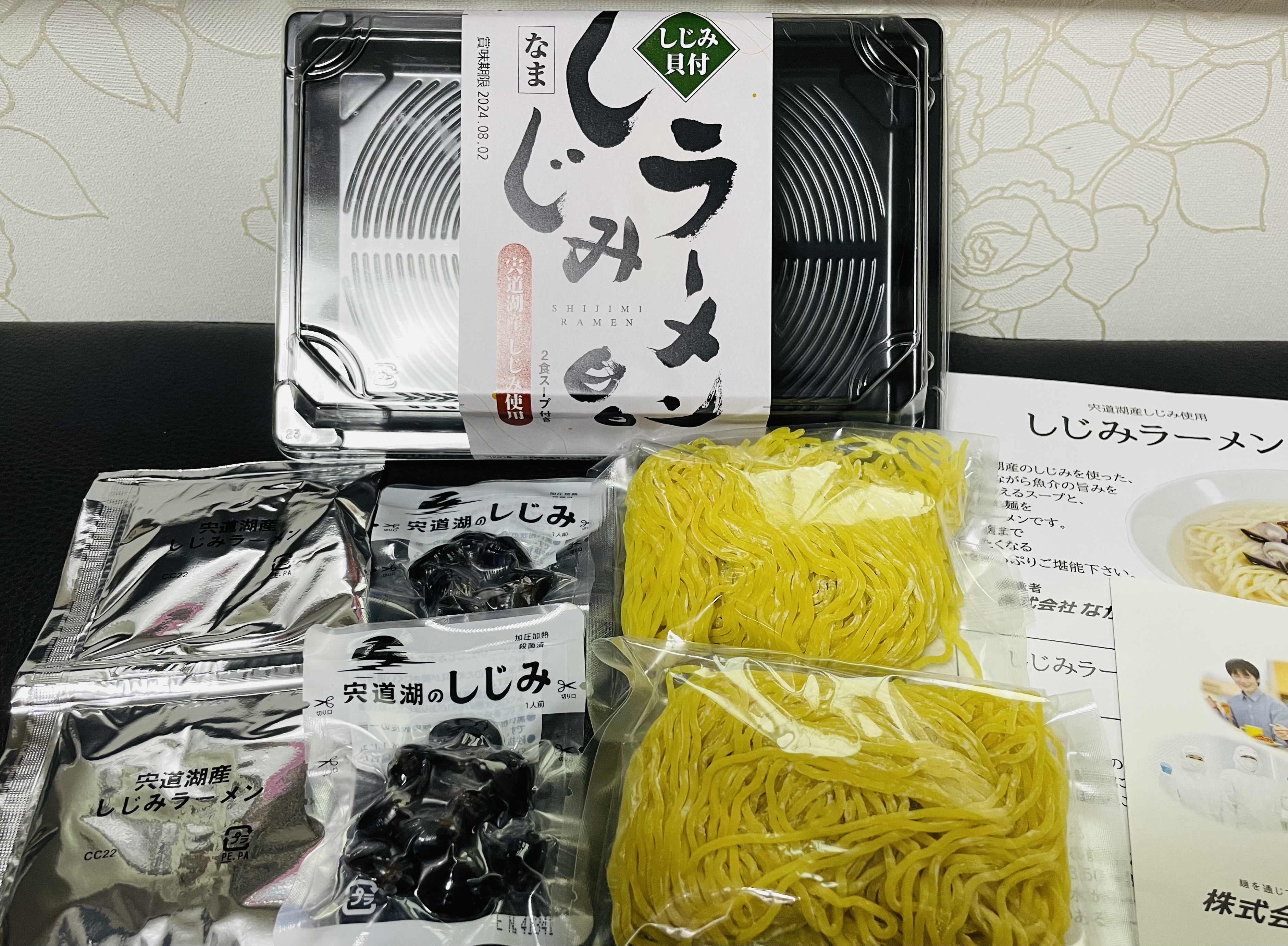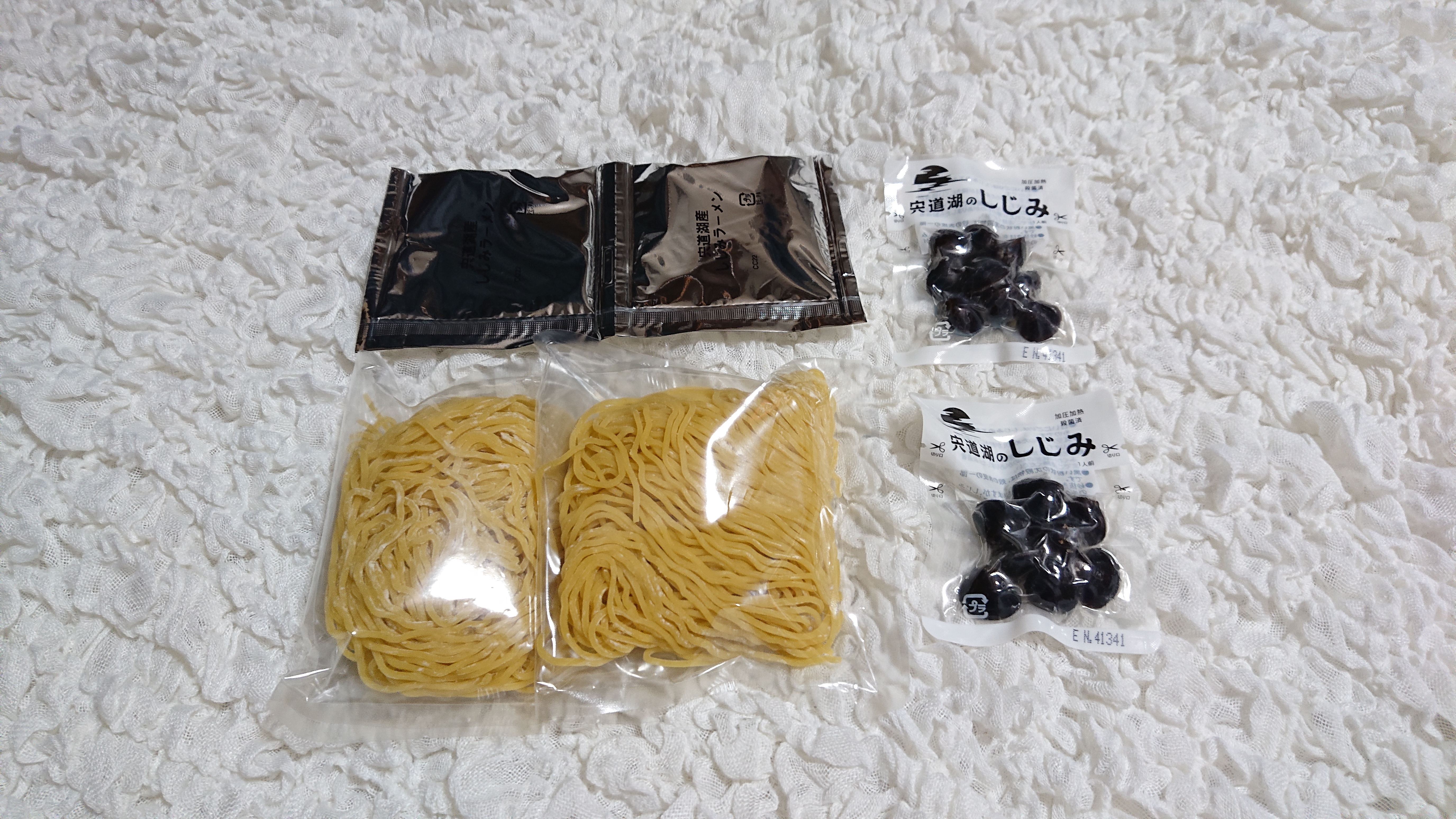 中を開けて見るとコンパクトに2食分のしじみラーメンがまとまった感じで箱の中に納まっていました。