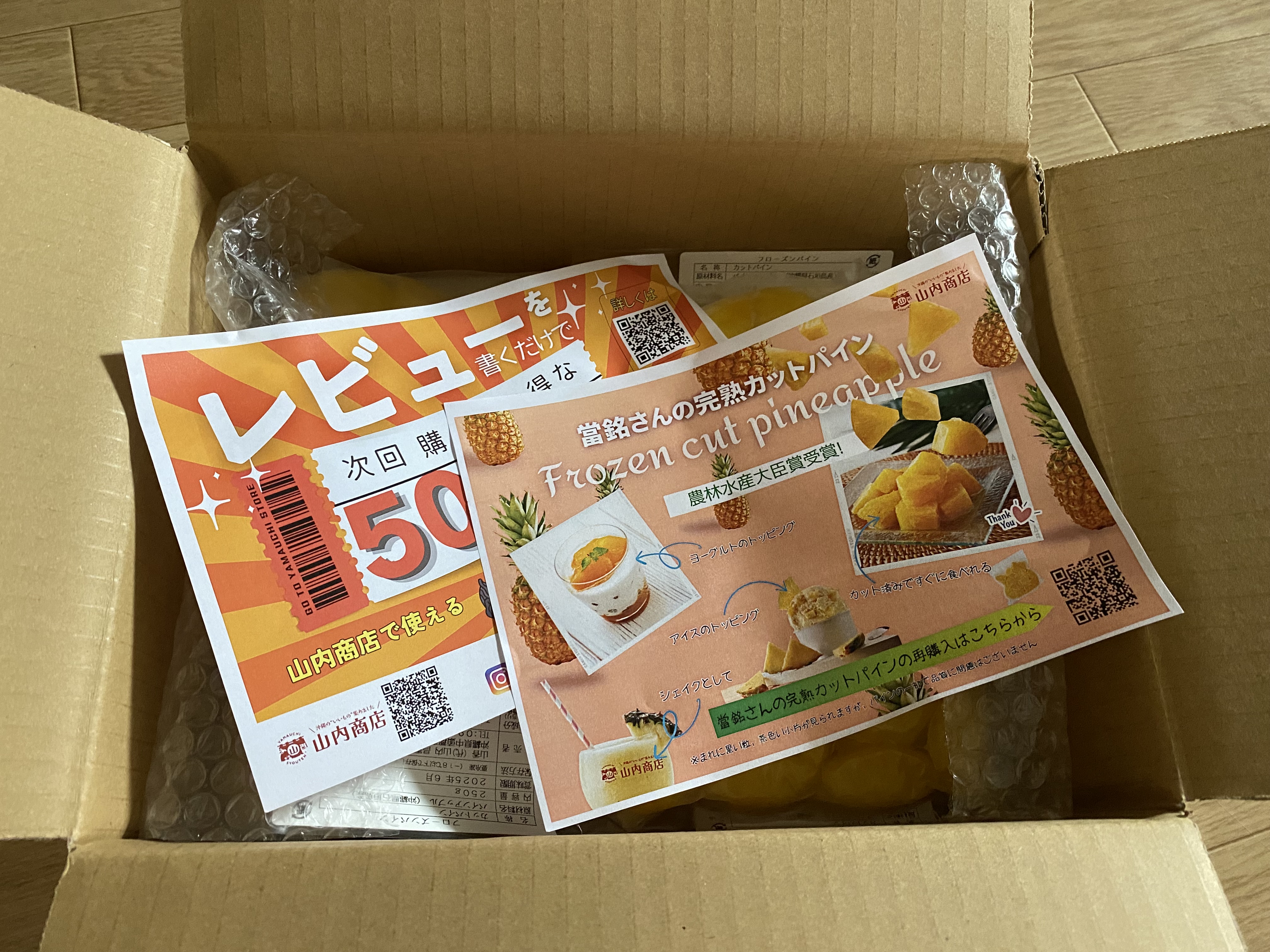 しかも、一口サイズにカットしてくださっているので、フレッシュなパイナップルを自宅で食べたい時に味わえるのがとてもうれしいです。