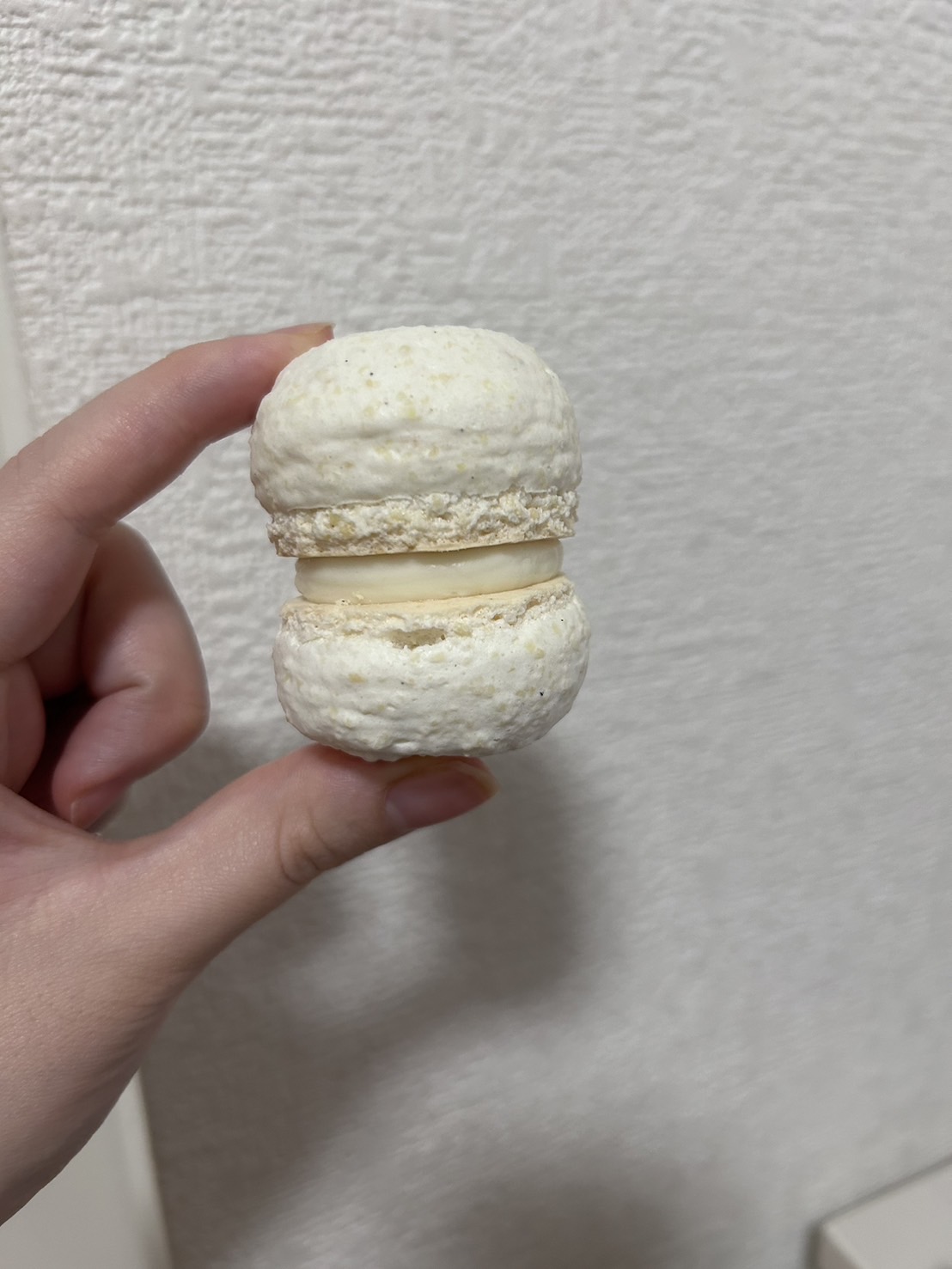 フォルムはバーチ・ディ・ダーマに似ていてコロンとしてかわいいです。また、食感も通常のマカロンより厚いので食べ応えがありますが、ほろほろ口に入れると崩れるので不思議な感じです。