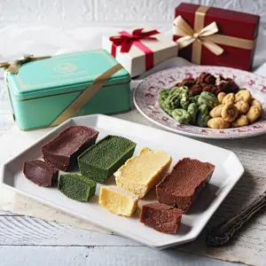 東東京・神楽坂のフレンチカフェレストランが手掛けた「テリーヌ ドゥ ショコラ」&「ペカンナッツショコラ」のセットです。ベーシックな「テリーヌ ドゥ ショコラ」は、雑味のない滑らかな口どけが楽しめます。「ペカンナッツショコラ」は、ショコラとペカンナッツローストの香りや食感を堪能でき、3種(ショコラ、キャラメル、抹茶)の中から好みの味1種を選べます。さらに、「テリーヌ ドゥ ショコラ」(ショコラ、抹茶、フロマージュ、チョコバナナ)の4種と「ペカンナッツ」3種(ショコラ、キャラメル、抹茶)の計7種の中から、好みの1種を選んで追加できる自由度の高い商品です。高級感のある缶入りなので、手土産スイーツとしてもおすすめです。
