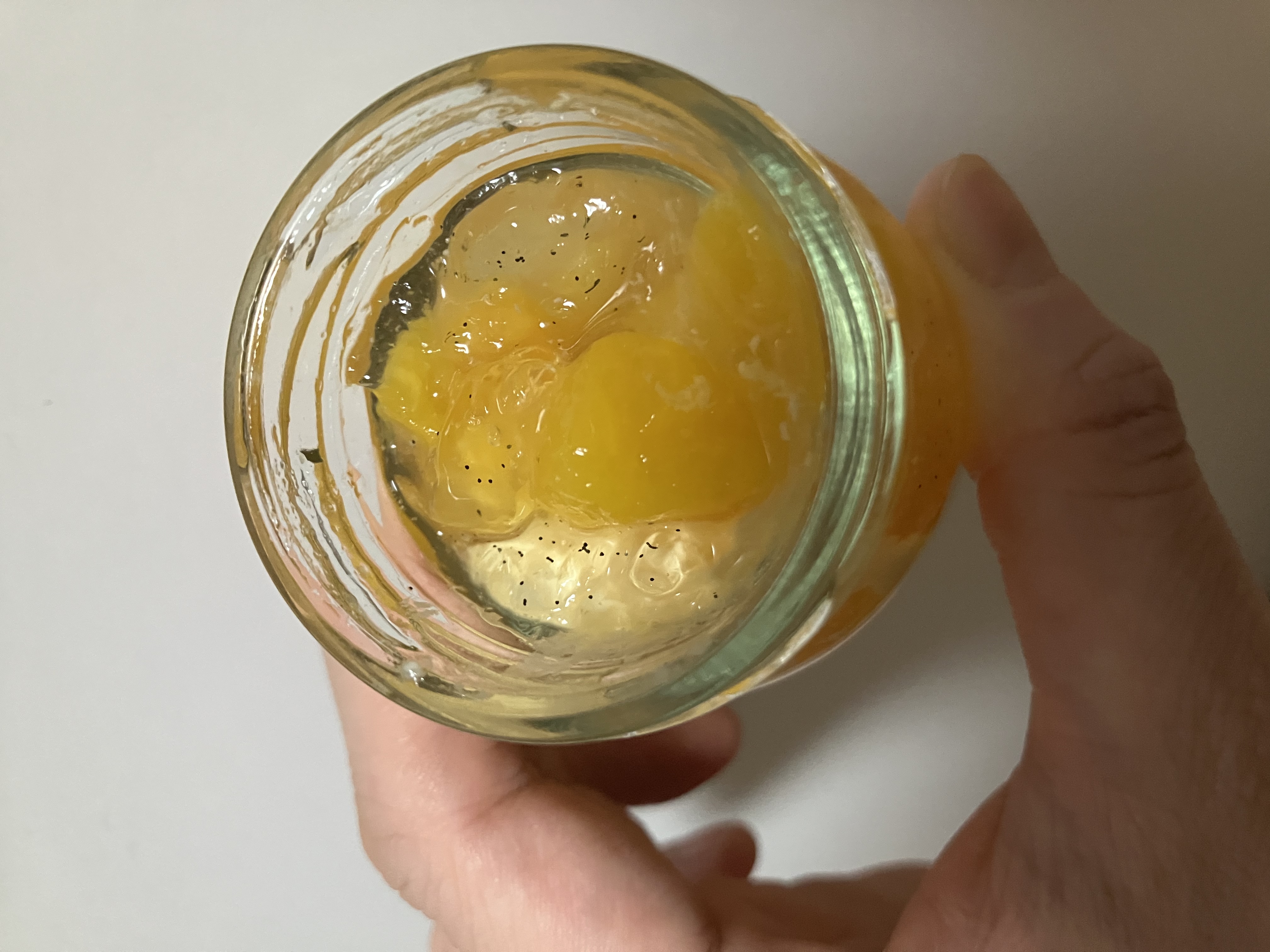 マンゴーの甘みが強いから、ジュレは控えめで、プリンの甘さがさらに美味しい!