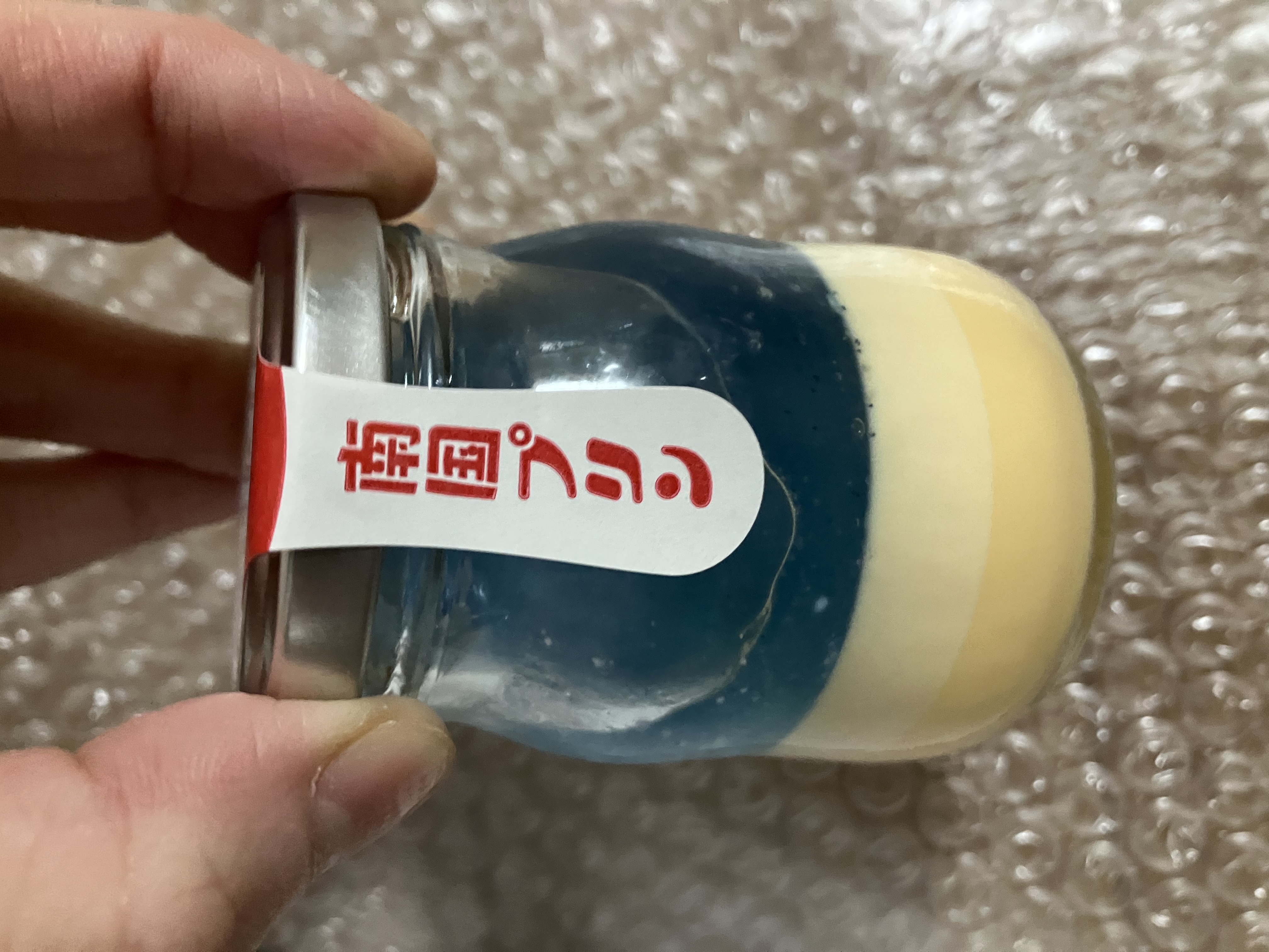 ラムネ味のジュレと、甘いとろけるプリンは一緒に食べると食感が楽しめて、それぞれ食べるとまた違った味わいに!