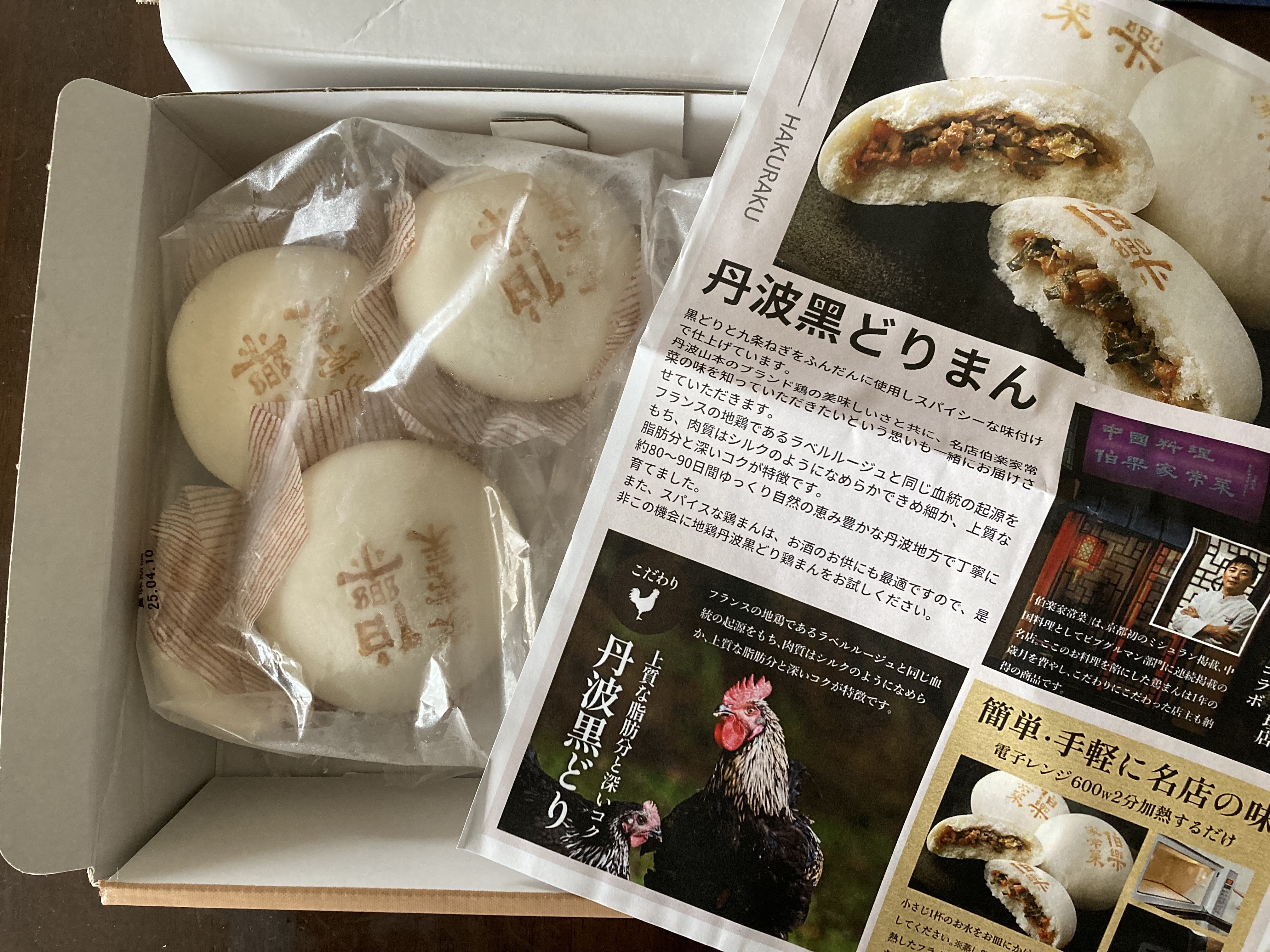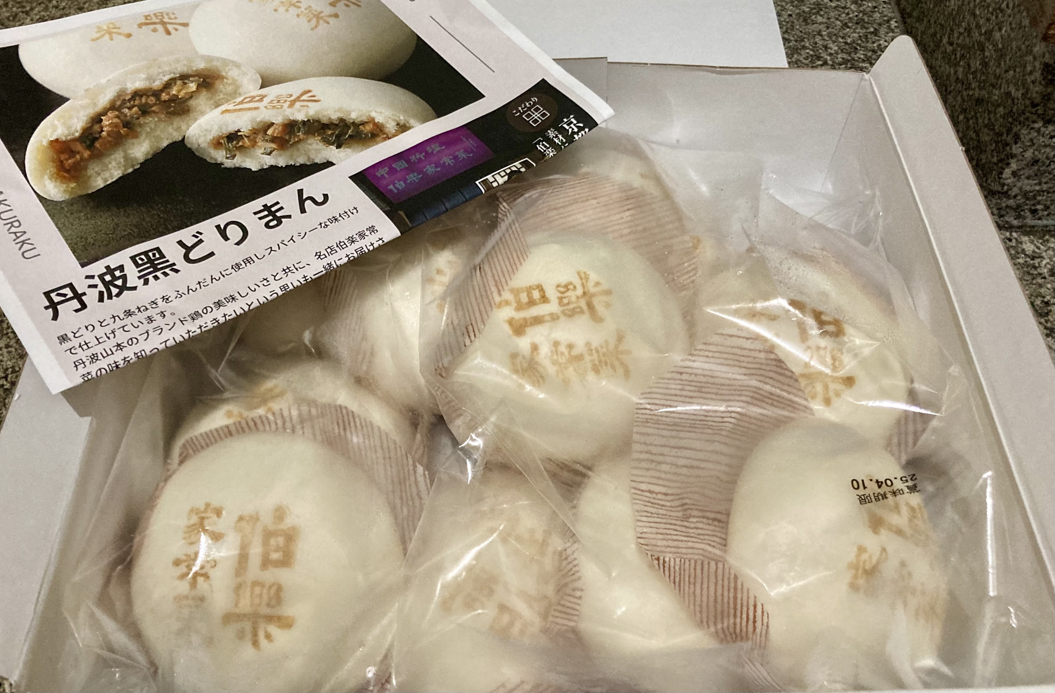 丹波黒どりと九条ねぎを使用した「中華まん」です。丹波黒どりは、フランスの地鶏であるラベルルージュと同じ血統の起源をもち、肉質はシルクのようになめらかできめ細か、上質な脂肪分と深いコクが特長です。地鶏ならではの旨みと歯ごたえ、九条ねぎの風味に、黒胡椒でアクセントを加えた上品な味わいが特長。京都初のミシュラン掲載、中国料理としてビブグルマン部門に連続掲載の名店「伯楽家常菜」のオーナー監修のもと餡を創り上げました。専用ボックスに入って届くので贈り物にもおすすめです。