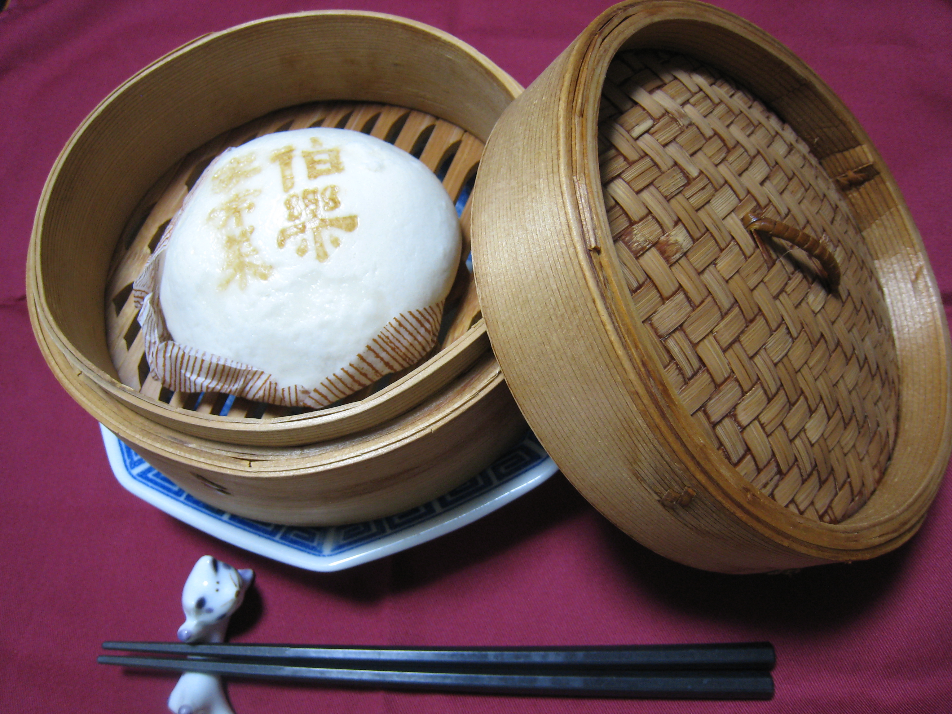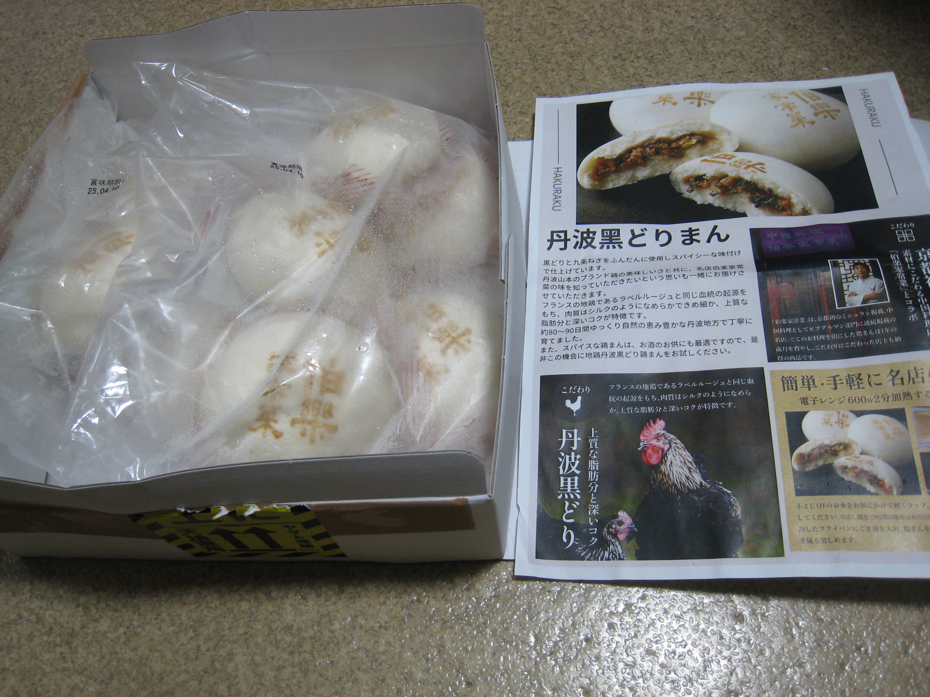 ついでながら、添えられていた紙に書かれていた調理法として、「蒸し器をご利用の場合は約10分加熱」とあります。しかし、原材料名や賞味期限が書かれているシールには、「蒸し器の場合 冷凍から約20分温めて下さい。」とあり、今度は時間が10分長く書かれています。