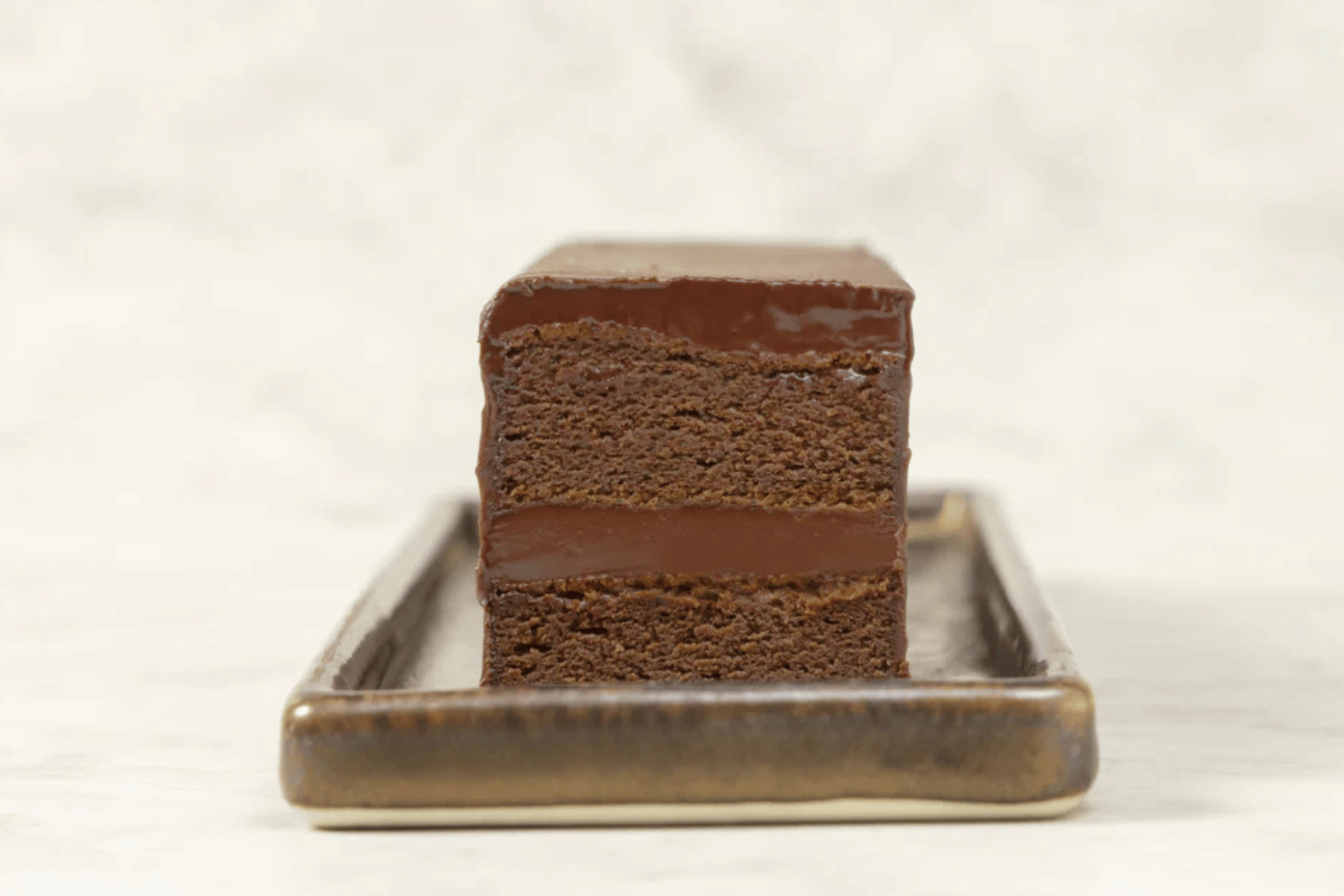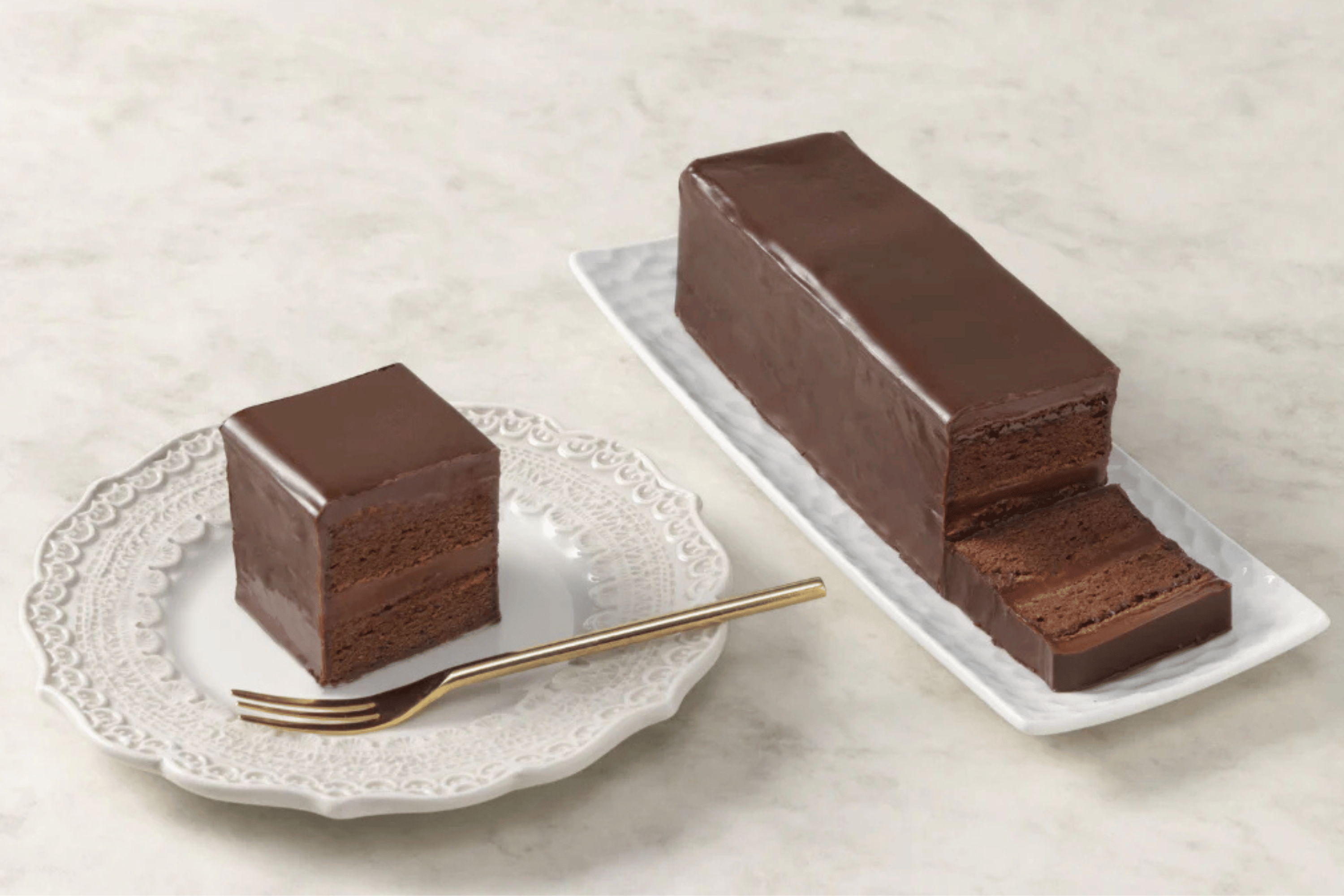 一切れひと切れ、均一なサイズにカットしやすい形状は、どなたでも手軽に楽しんでいただけるよう工夫したものです。やわらかくしっとりとしたスポンジと、濃厚で繊細な2層のチョコレートの深い味わいを、心ゆくまでお楽しみください。