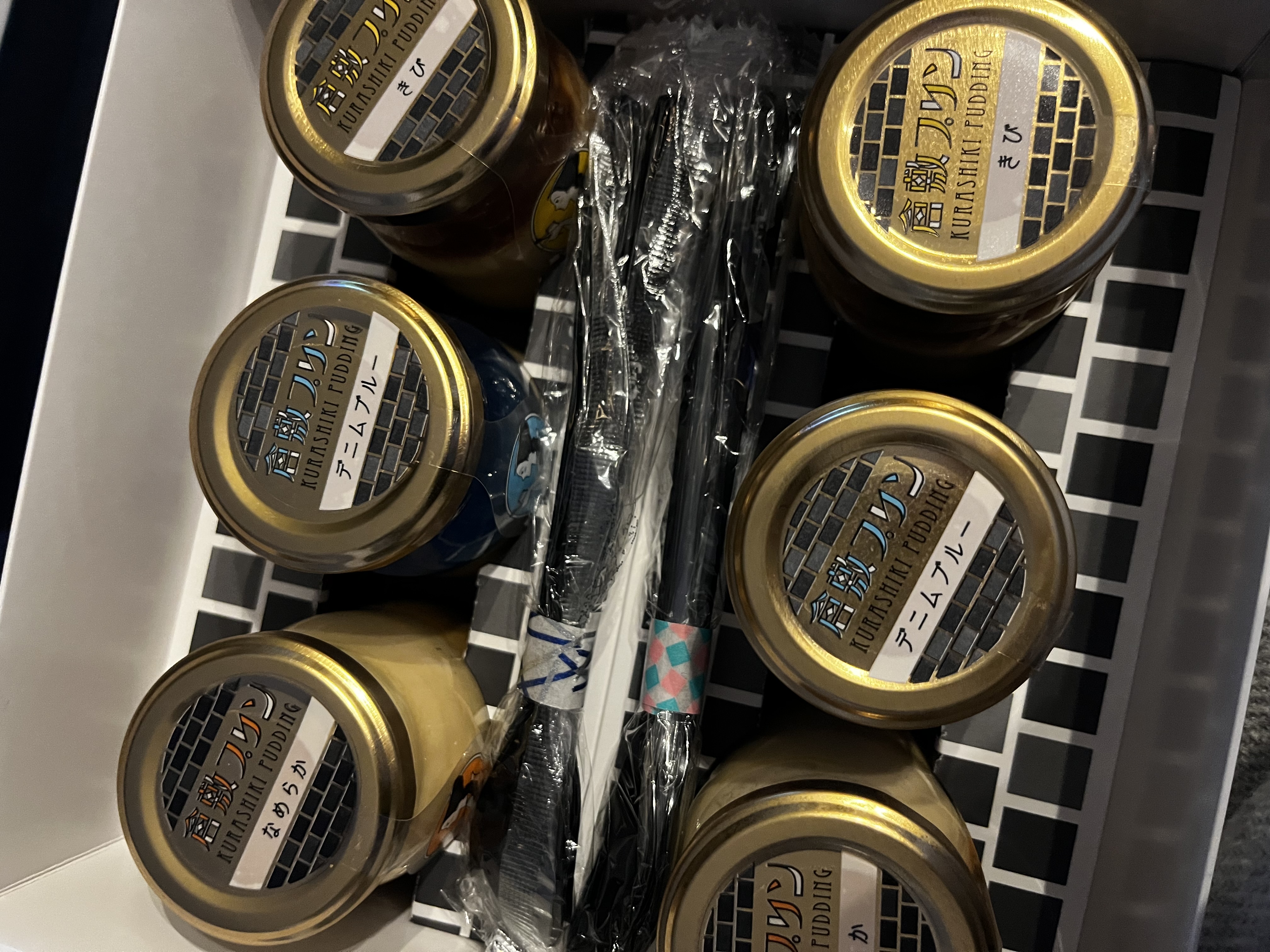 ふたを開けると、プリン達がおしゃれに並んでいます!まるで倉敷の街の中のようです!