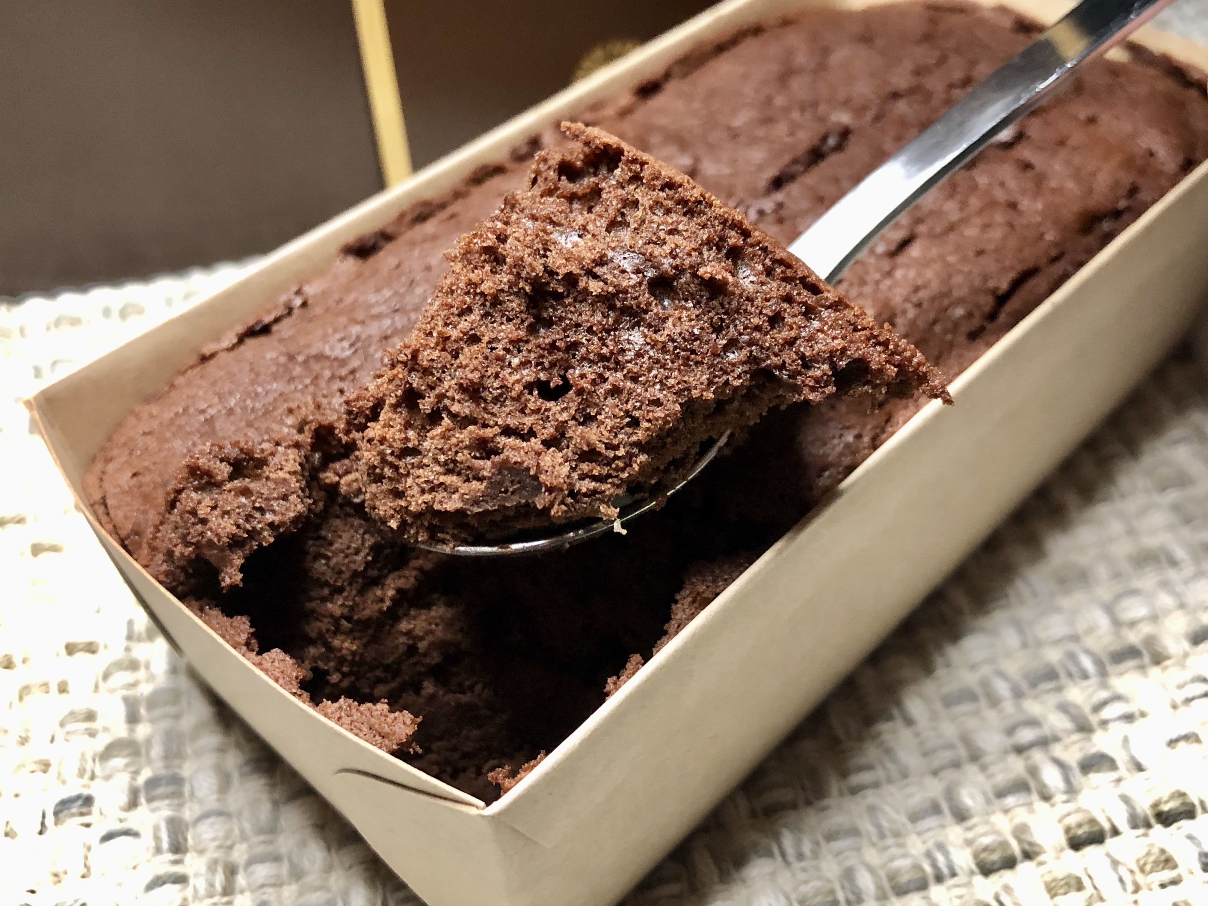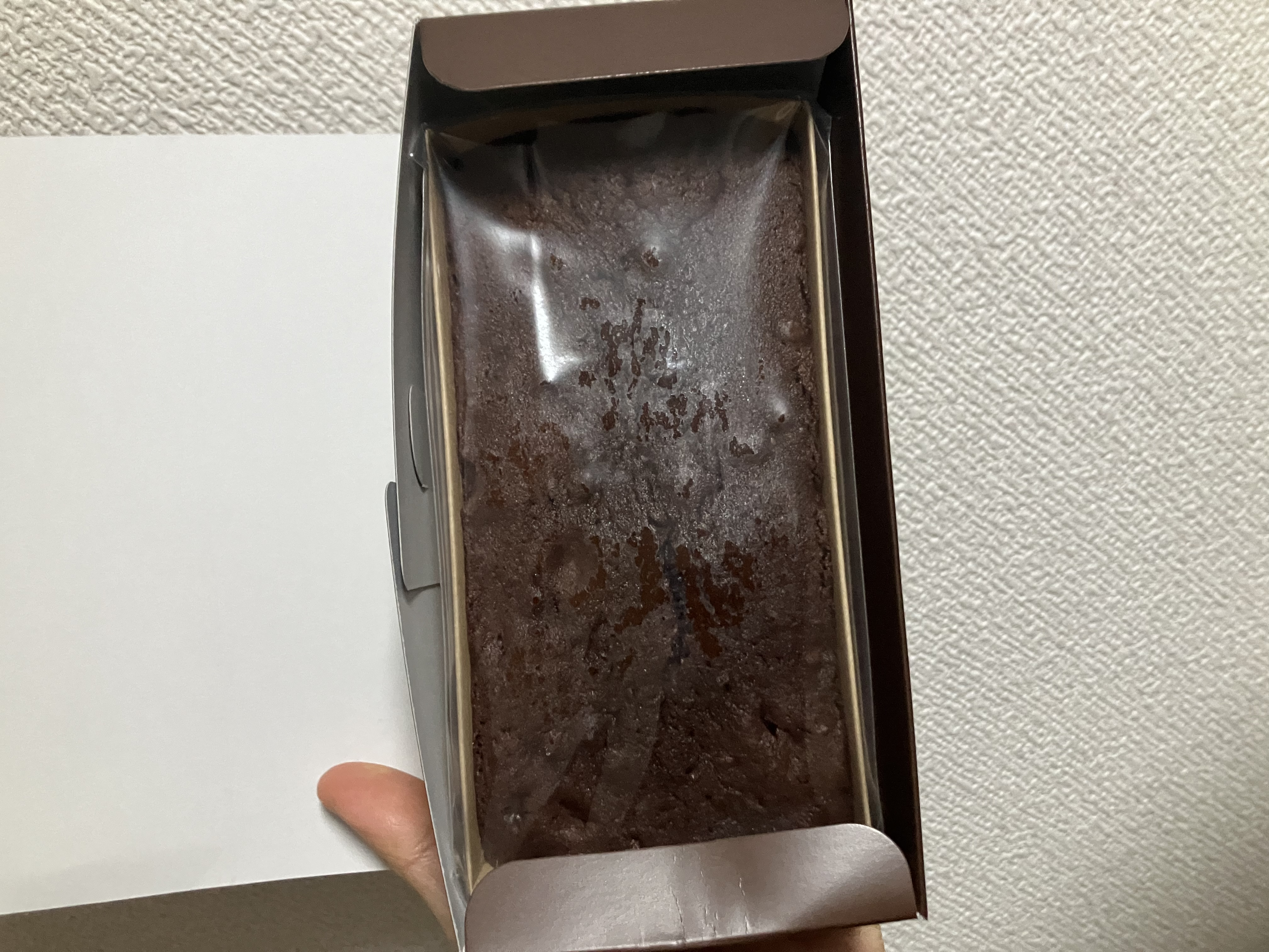 一口目、口の中に入れた瞬間に、開封時以上のチョコレートの香りと、口の中のケーキのほろほろ感、食感のアクセントになるクルミの食感が包んでくれます。甘さは優しく、食感も思ったより軽いので6等分して一切れ食べたのですがもっと食べたくなってしまいました。生クリーム、チョコレート、バターと原料だけ見れば「思いかな?」と感じてしまうのに王道ガトーショコラの魔力は恐ろしいです…。あっさり一切れ完食して、お供のお茶で余韻を味わっていました。