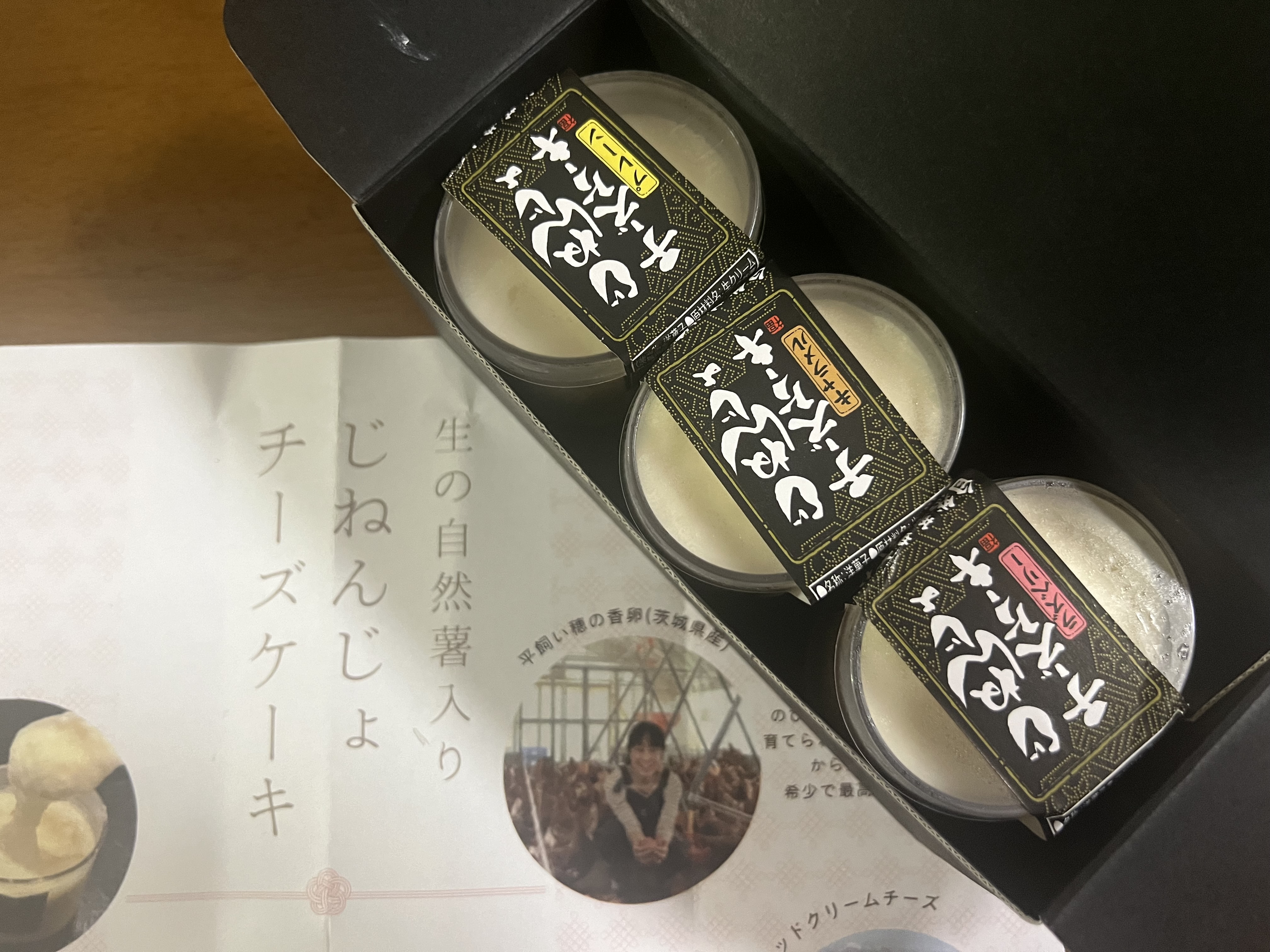 自然薯の風味と食感を最大限に生かした、ベイクド(焼き)、レア(生)の2層の「チーズケーキ」です。それぞれ異なる味わいのチーズケーキを「自然薯」を使うことで新感覚の味わいに仕上げました。素材本来の味わいを楽しむために、こだわり抜いた原料で、食品添加物を使用せず、シンプルに仕上げています。素材の味わいがしっかり楽しめる「プレーン」、濃厚な「キャラメルソース入り」、さわやかな「ラズベリーソース入り」の3種。異なる味わいのセットなので食べ比べが楽しめます。金箔押しの専用ボックスに入っ届きます。