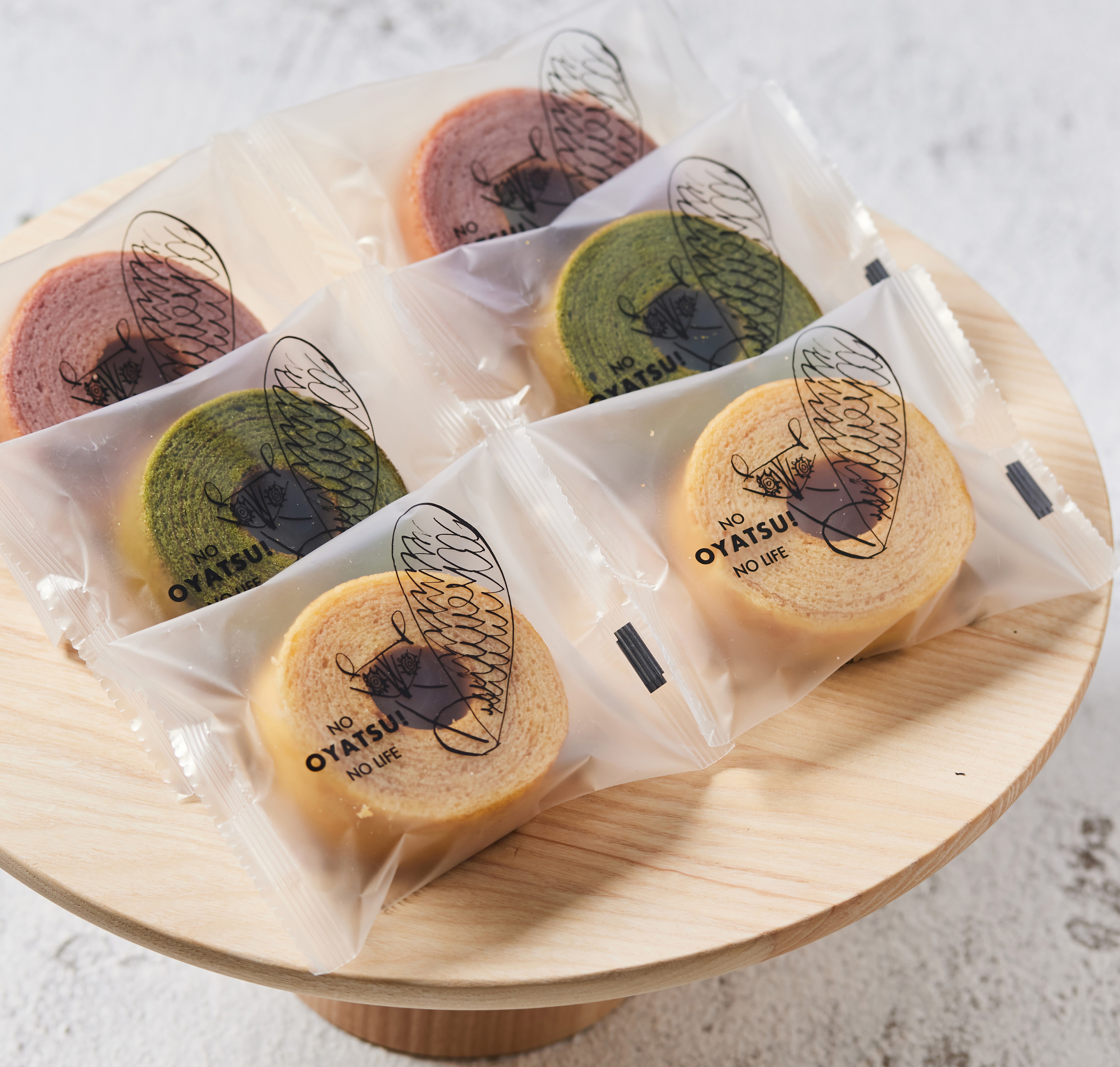 個包装されている直径6cmサイズのミニバームクーヘン。地元の香川産の卵を使って、当日の朝仕入れた新鮮な卵で作ります。
