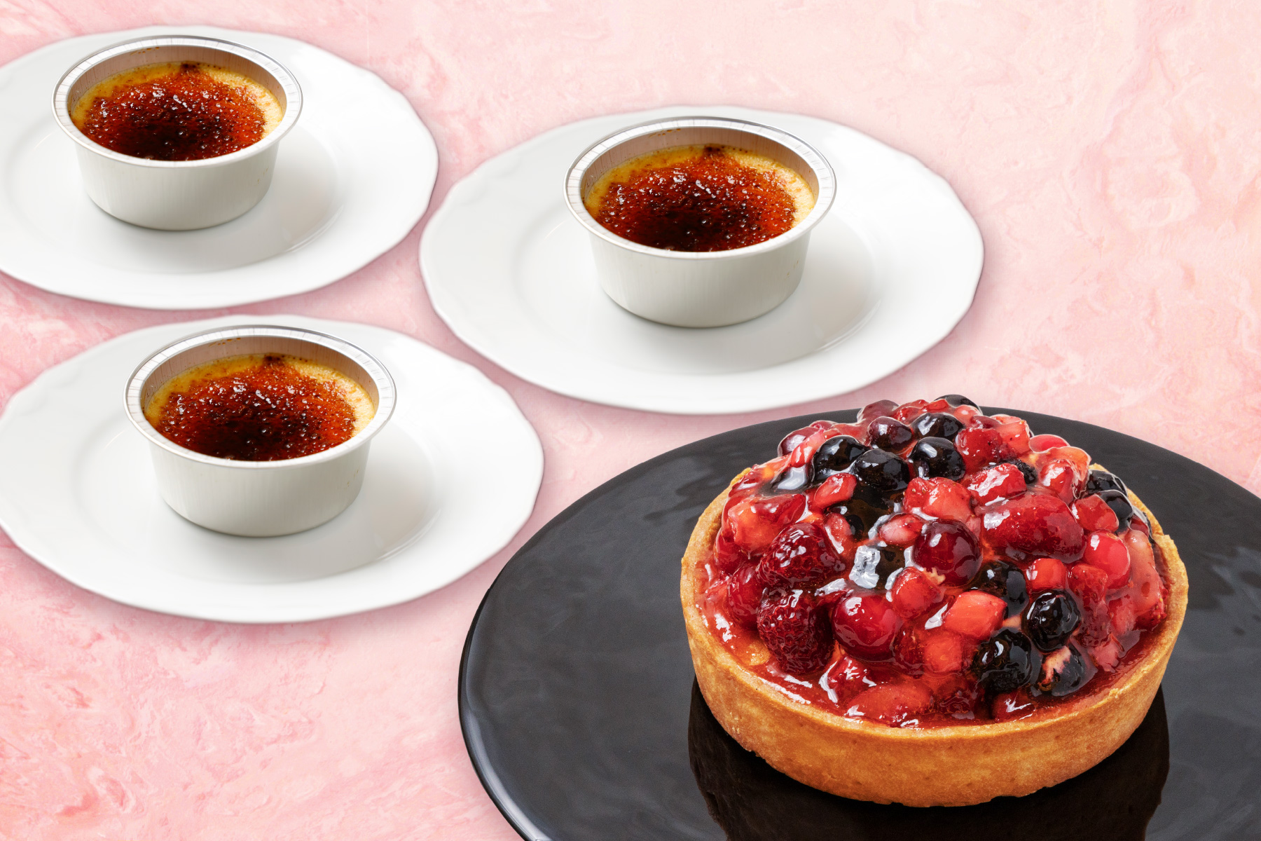 俺のシリーズの「スイーツセット」です。カラメルのほのかな苦みがアクセントの「クレームブリュレ」。卵黄をふんだんに使用した濃厚なカスタードが魅力です。赤い果実(ベリー)をふんだんに使った「赤い果実のドームタルト」。数種のべりーを贅沢にあしらい、酸味と甘みのバランスの良い商品です。異なる味わいのセットなので食べ比べが楽しめます。専用ボックスに入って届くので、贈り物にもおすすめです。