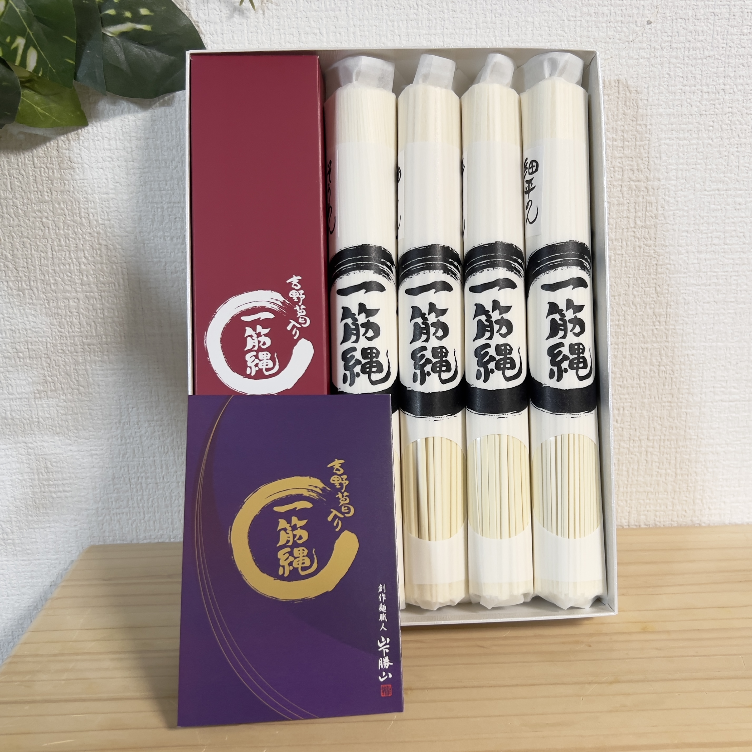 一般的なそうめんは麺と麺が引っ付くのを防ぐため製造時に油を使用しますが、一筋縄そうめんは油を一切使用せず、油の代わりに奈良県特産の吉野葛を用いて製麺しています。そうめんの袋や箱を開けた時のそうめんの臭いは実は、油の酸化臭なのです。