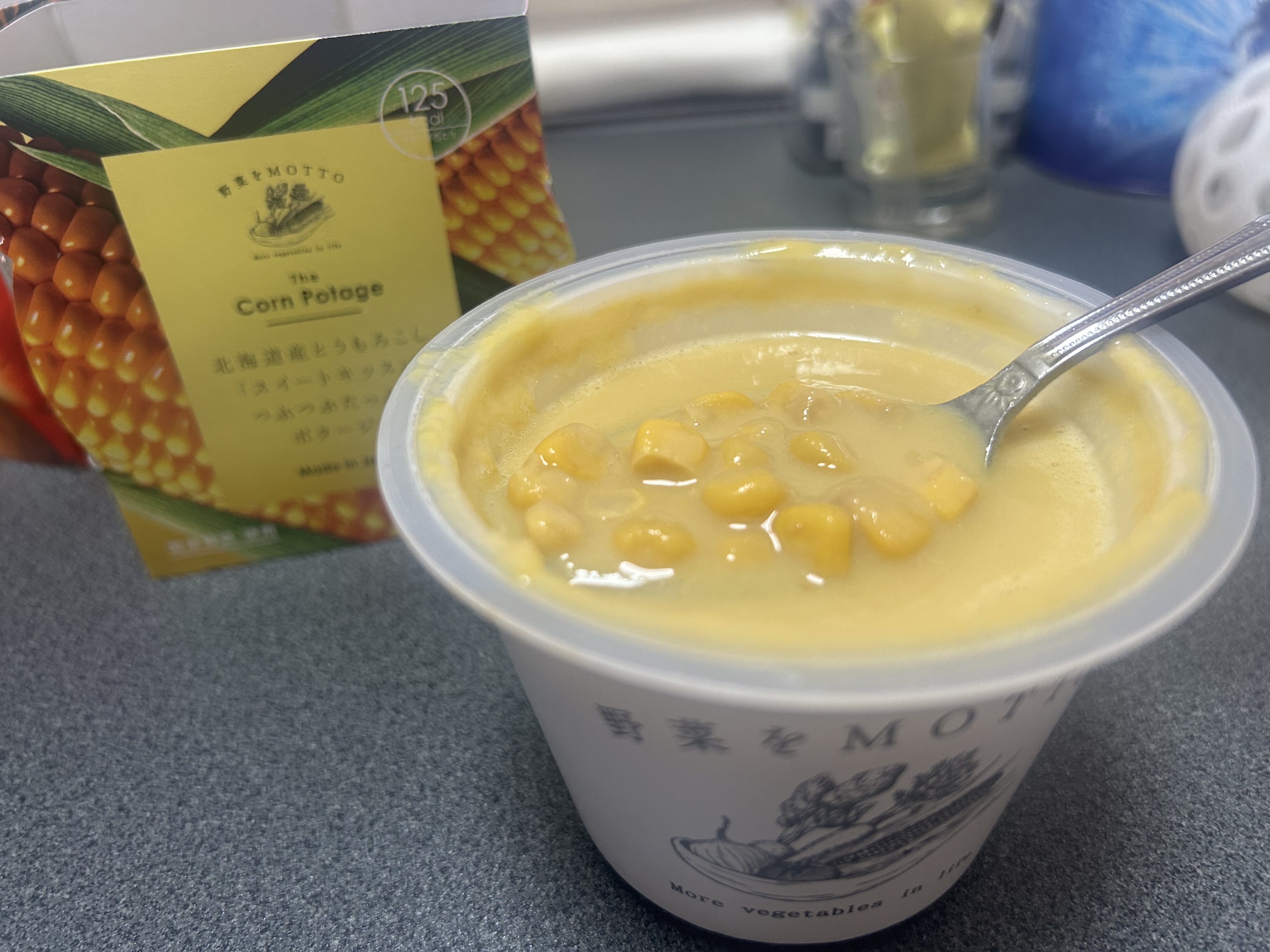 優しい甘ささのコーンスープは老若男女飲みやすい味だと思います。コーンもシャキシャキとした粒感で美味しいです。