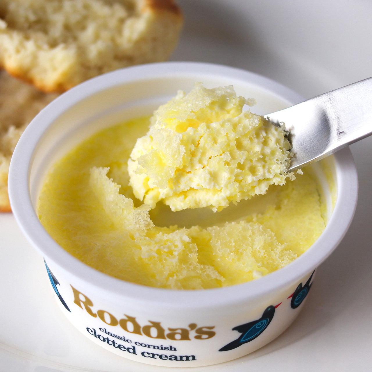 味わい深い良質な生乳を伝統的な製法で作るクロテッドクリームには表面の黄色い膜(クラスト)が現れます。