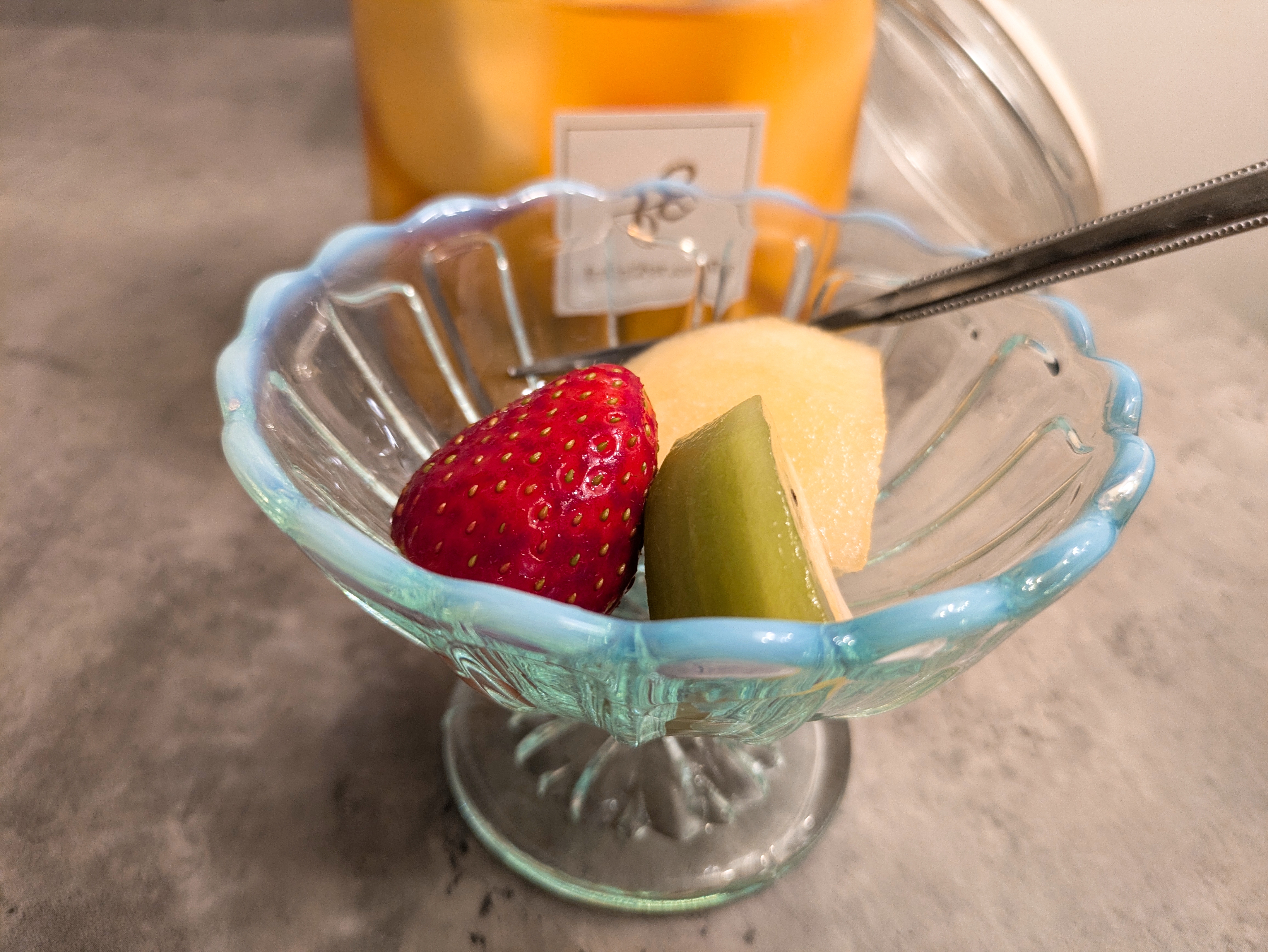 雑味の無いシロップがフルーツの持ち味を引き立てていて、フルーツをそのまま戴くより断然美味しいのです。