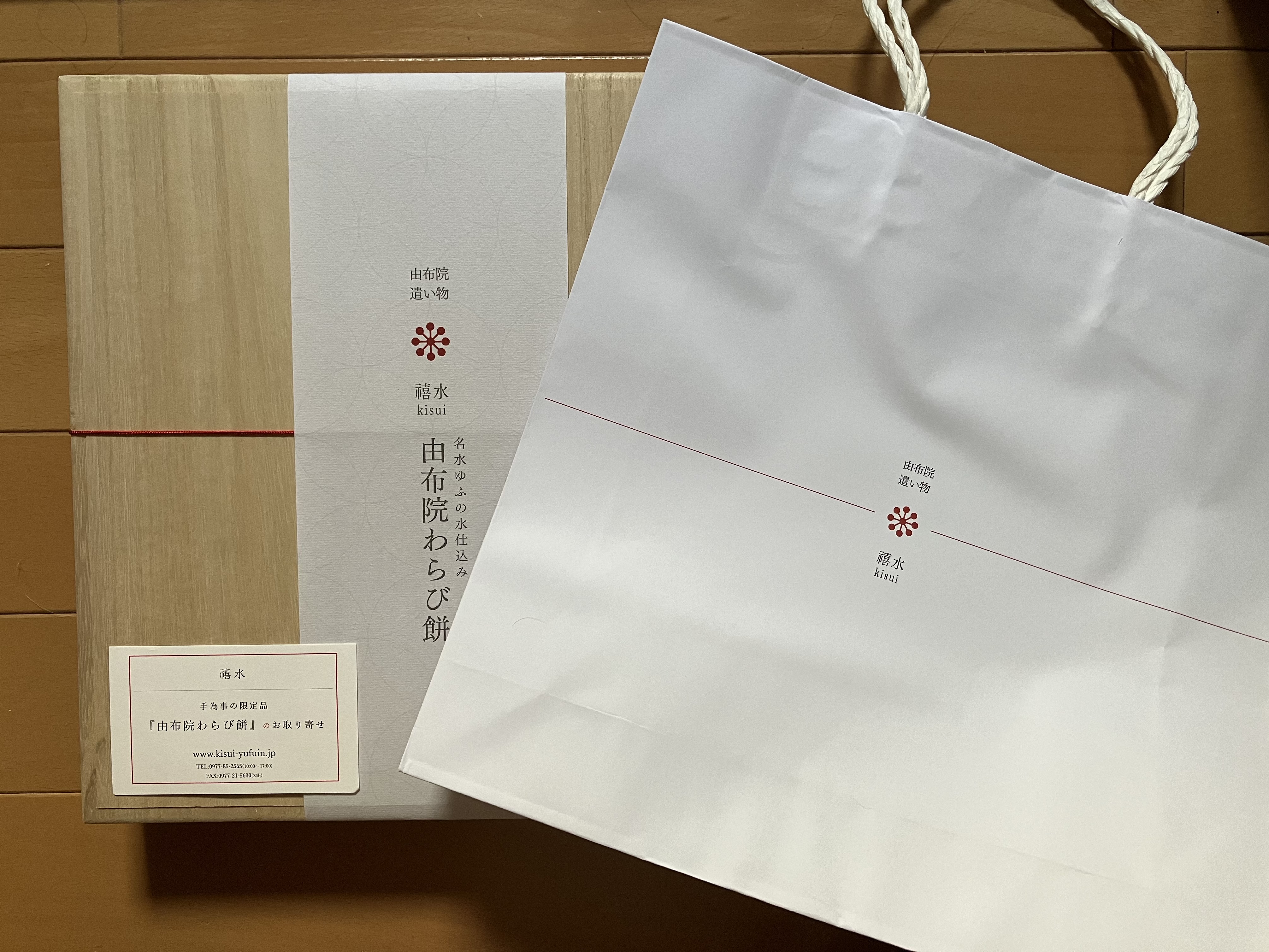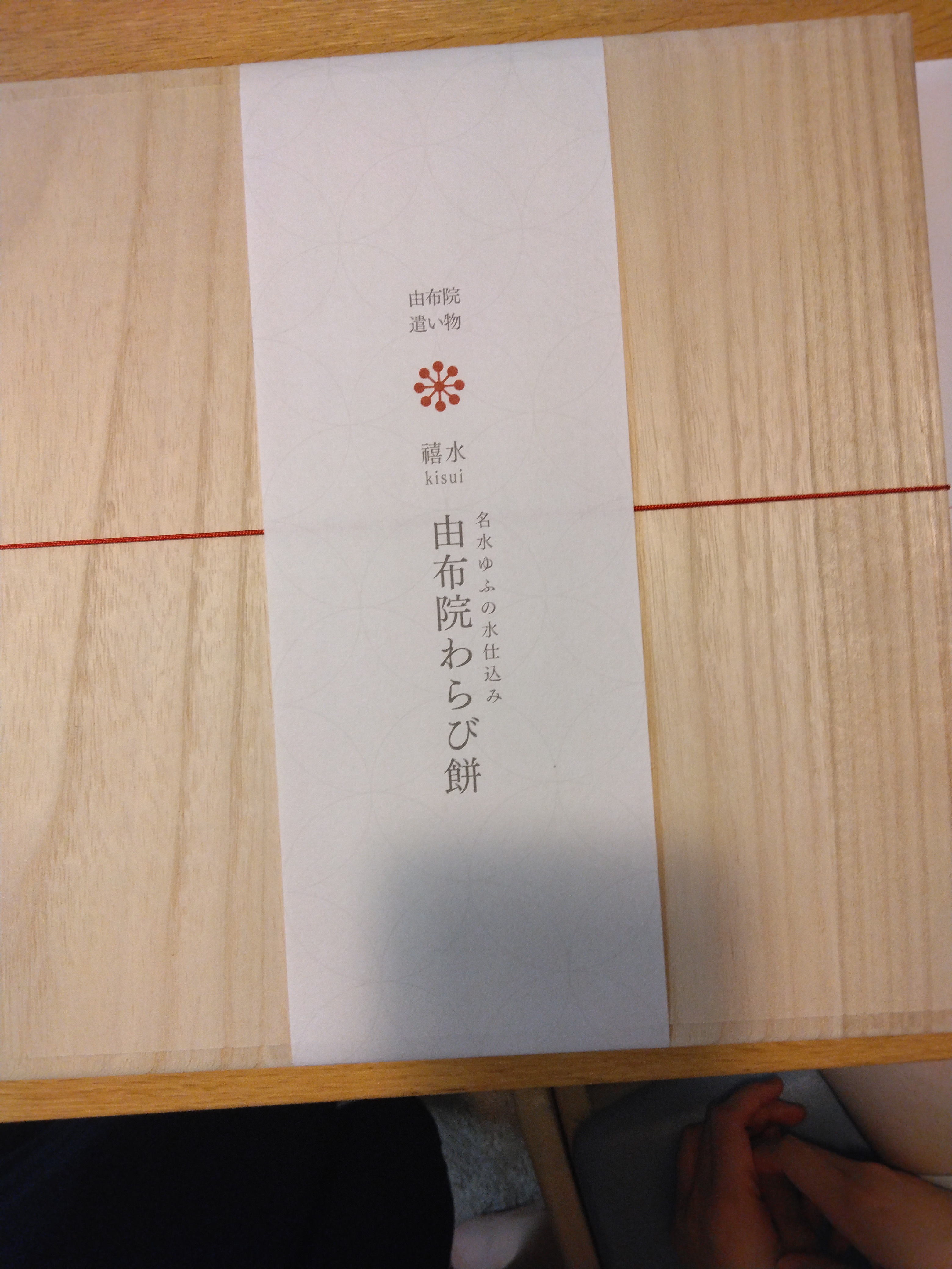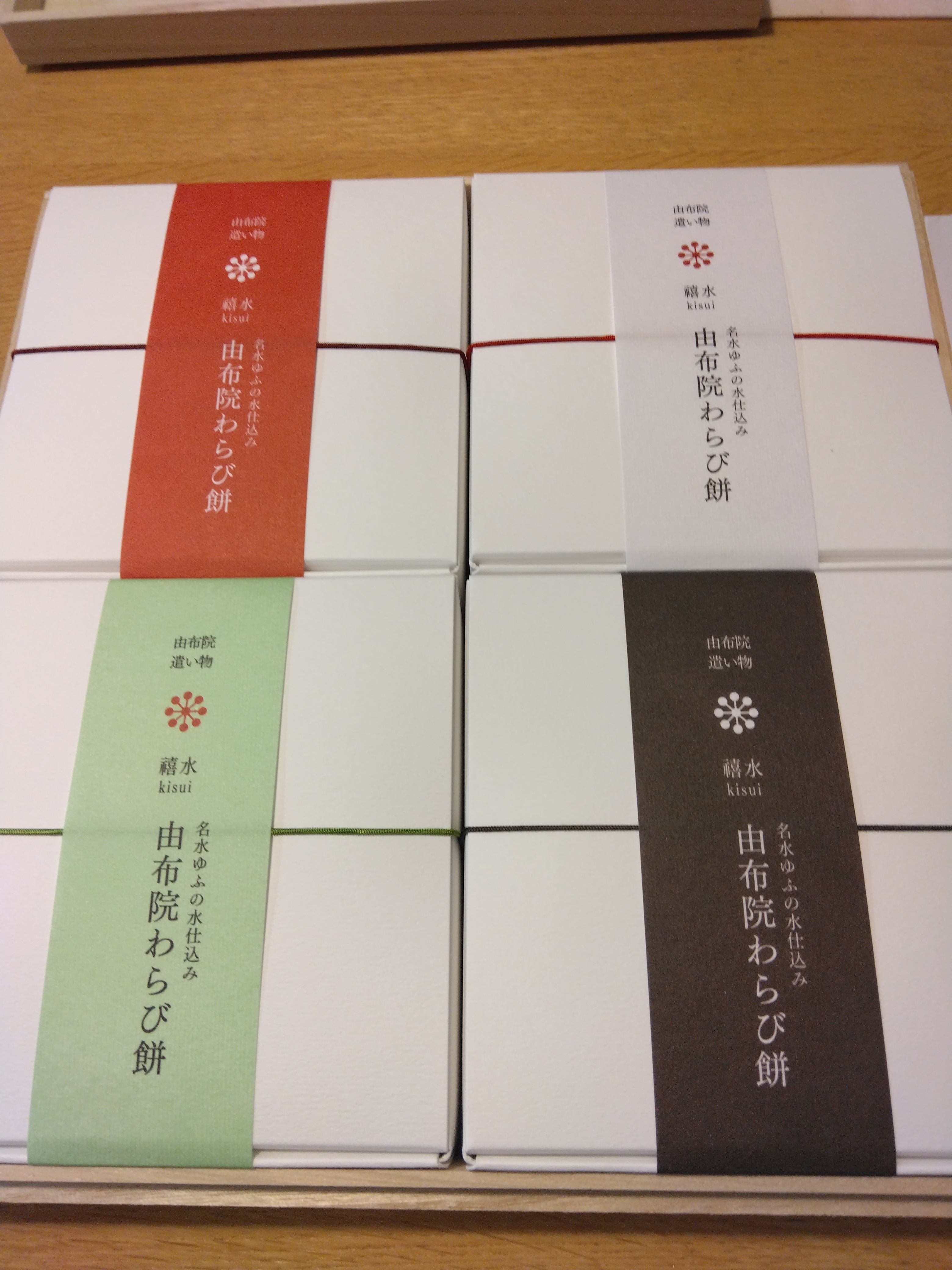 由布院の地下240mより湧き出る名水ゆふの水仕込みのわらび餅です。