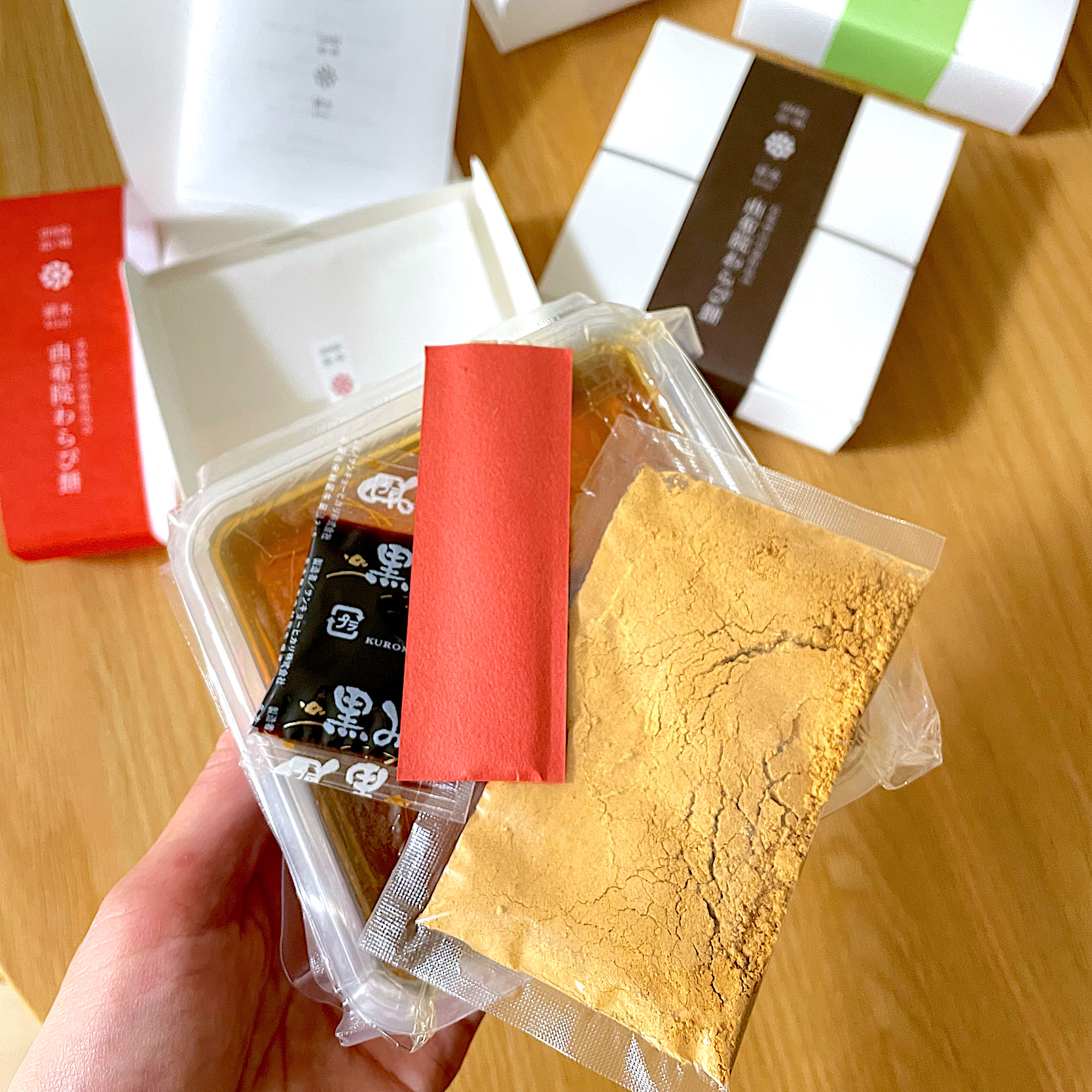 由布院生まれのわらび餅。煉りたての味をそのままお届けしますので、ご家庭で由布院をご堪能ください。