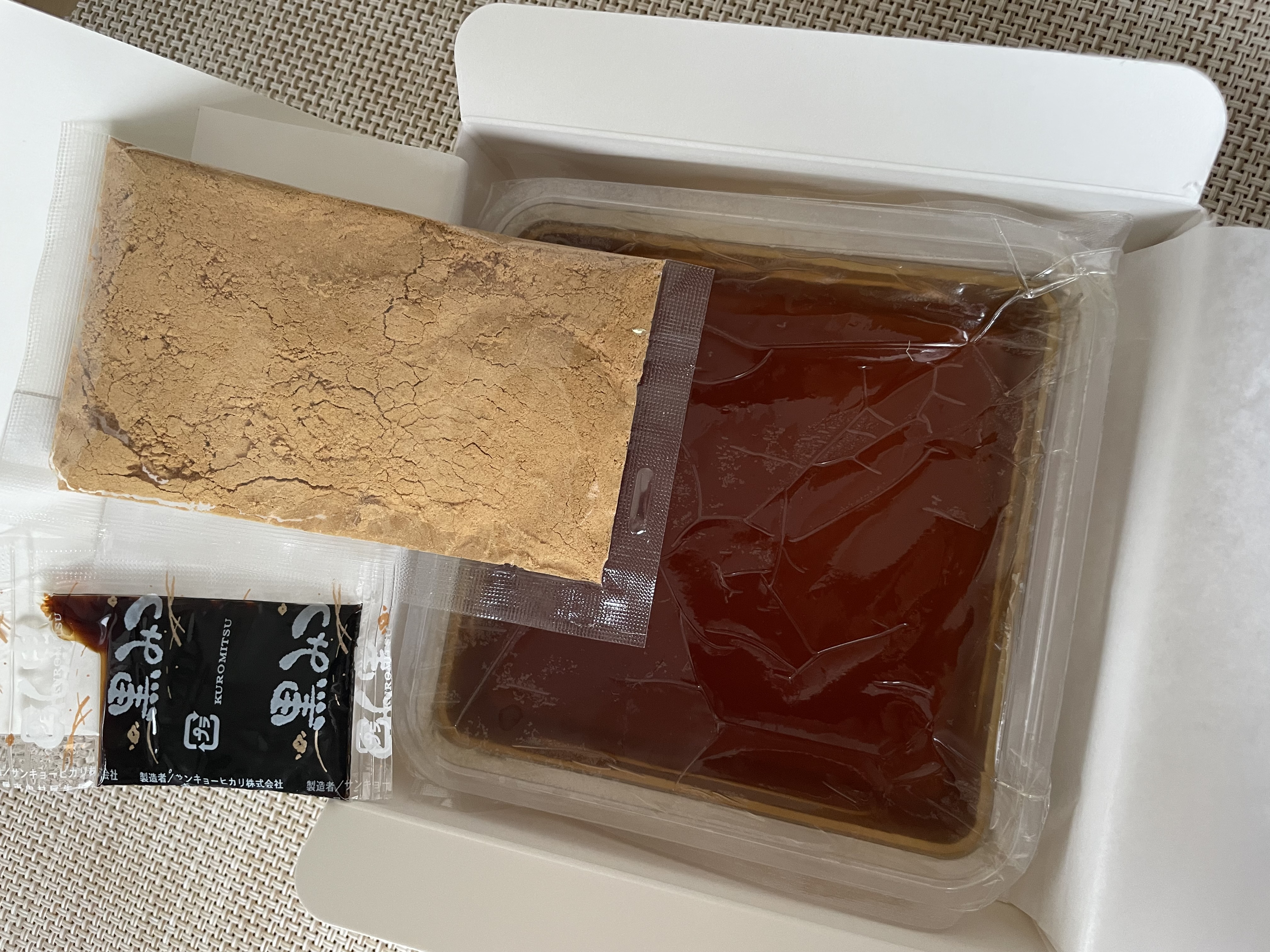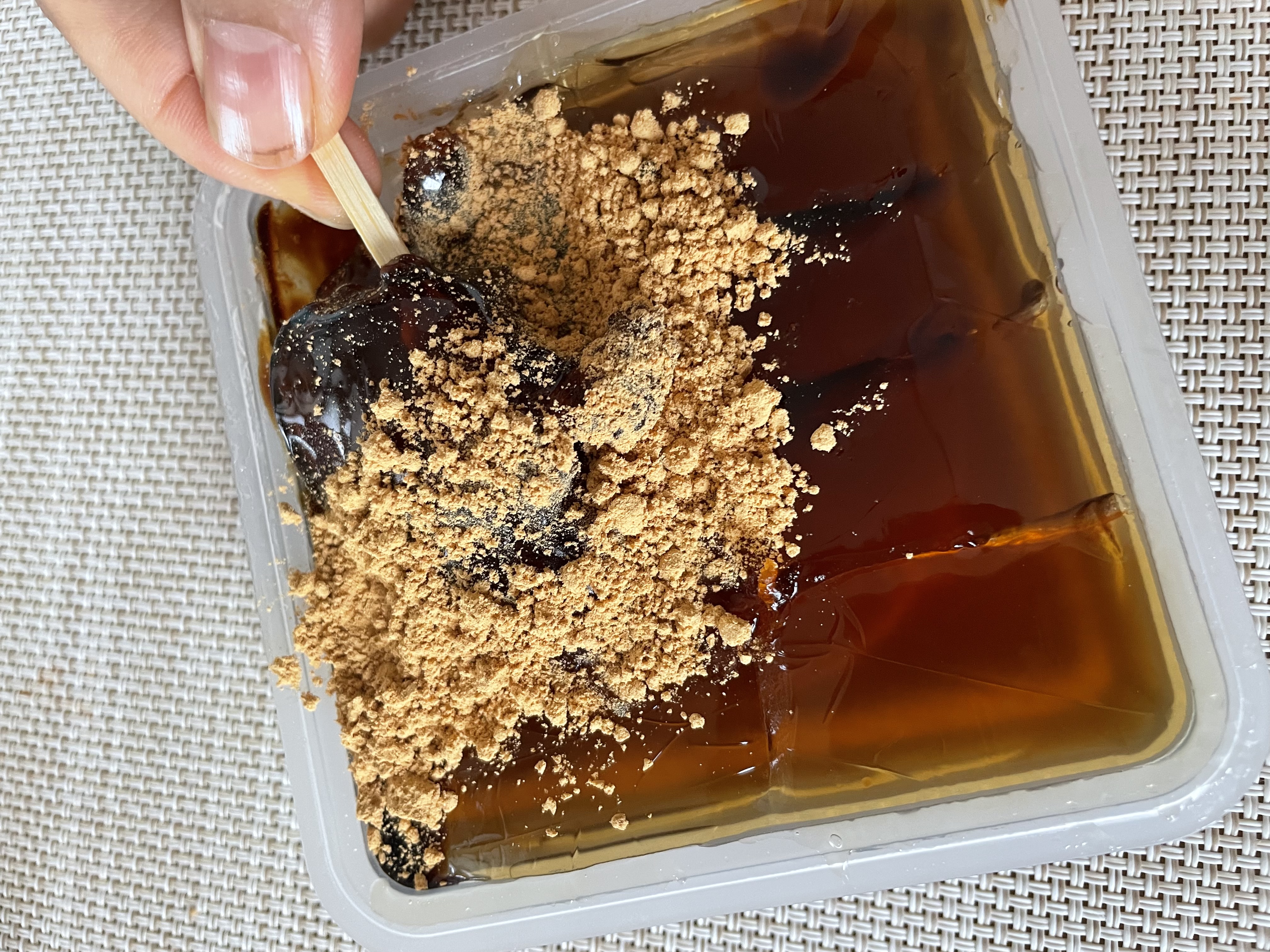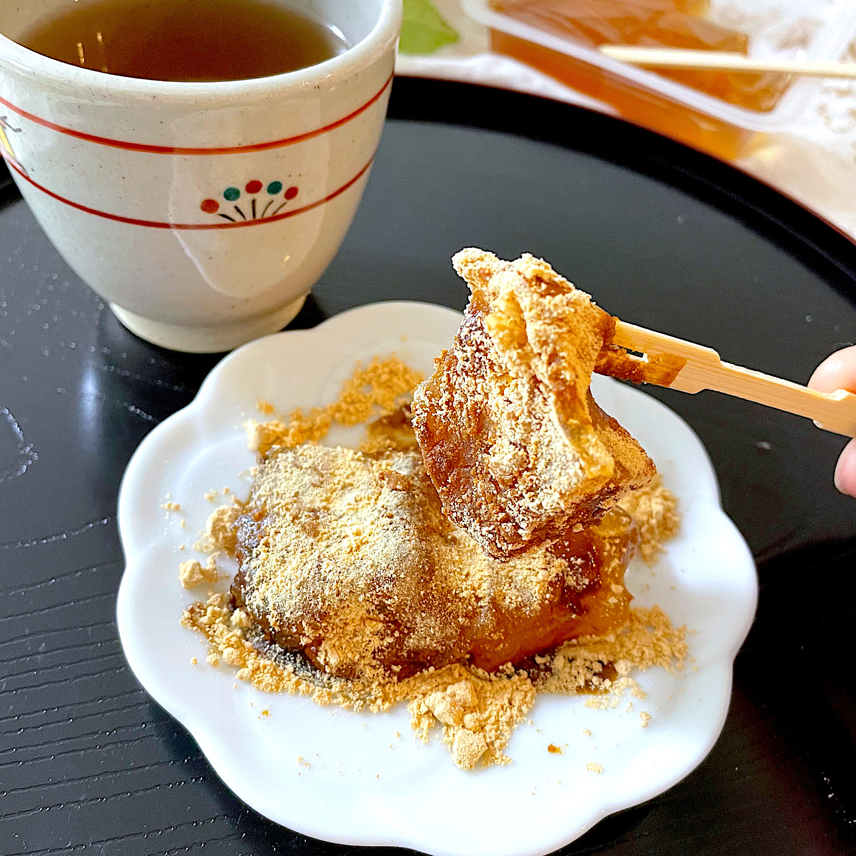 黒糖きな粉:わらび餅に黒糖と糖蜜が入っているからか、わらび餅そのものがコクがあり甘さもしっかり感じられます。
