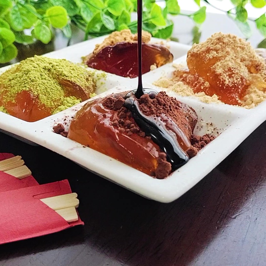 黒糖きな粉とチョコのわらび餅は食べたことがなかったので、より楽しみでした。