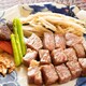 佐賀県伊万里市にある「松尾勝馬牧場」で愛情たっぷりに育てられた黒毛和牛「伊萬里牛(伊万里牛)」の部位4種を、まるでチョコのようにカットした「サイコロステーキ」です。ほんのり甘みがある「ロース」、きれいな霜降りが入っている「ミスジ」、最もサシが入りやすい「トモ三角」、脂肪分が少なくあっさりとした味わいの「モモ」の4種セット。霜降りと赤身の食べ比べができるのもポイントです。バレンタインやホワイトデーの贈り物などにおすすめです。