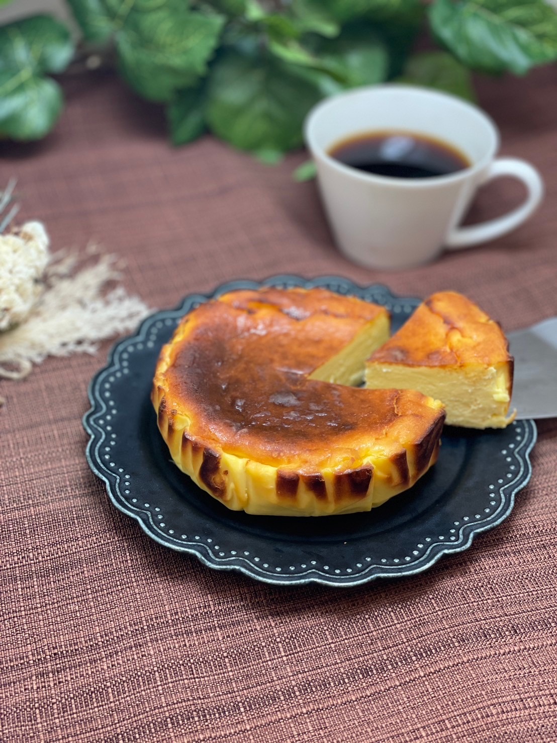 こだわりの素材・製法で作られたバスクチーズケーキで優しい甘さと程よい焼き色が特徴でした。