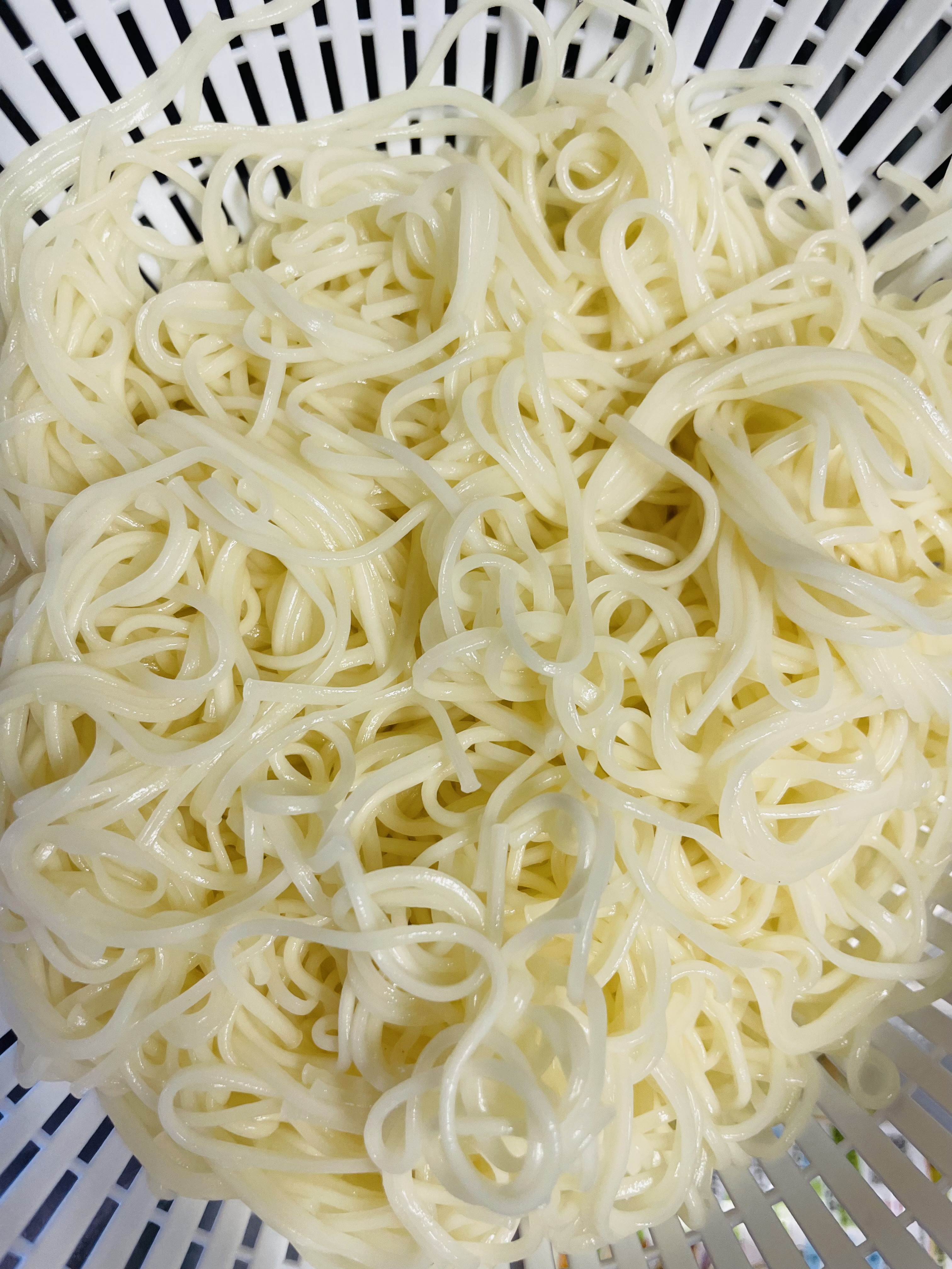 麺をしっかり洗ったら麺ツルツルで光っていて、塩分も強い感じはあまりしませんでした。