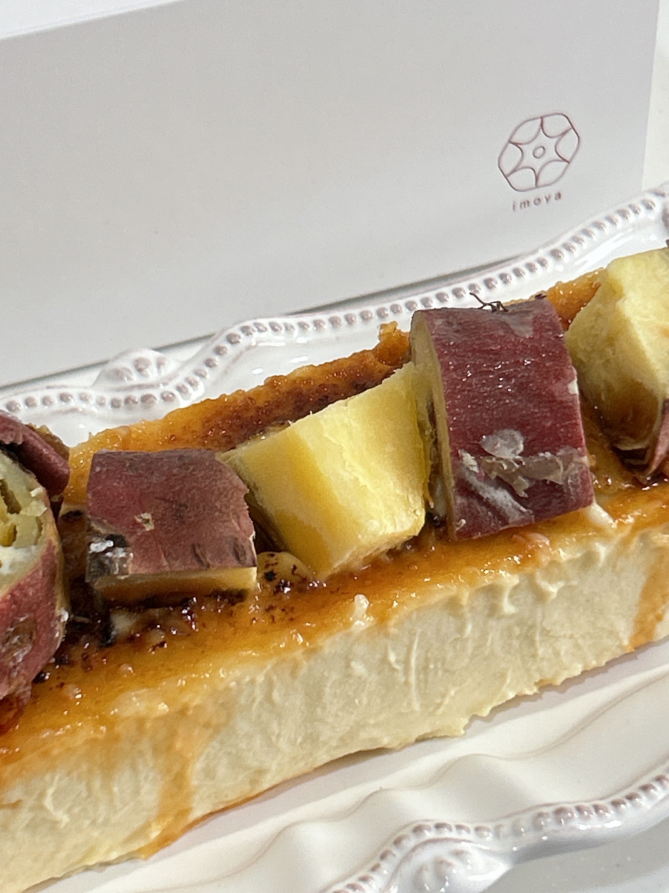高級焼き芋をたっぷり使った、とろける「蜜芋テリーヌブリュレ」です。1000時間以上熟成させた紅はるか「和芋 紅茶房」を贅沢に使用し、一度焼き芋にしてから丁寧になめらかに裏ごしし、北海道産生クリームとフレッシュクリームをブレンドしています。最後に香ばしくキャラメリゼして、ほろ苦感をプラスしています。半解凍で食べるのがおすすめで、「外はとろ〜り、中はひんやり」とろける新食感が楽しめる、大人のご褒美スイーツです。専用ボックスに入って届くので、贈り物にもおすすめです。