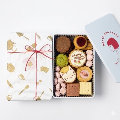 母の日を特別な日に彩る「クッキー缶」です。12種類のクッキーとメレンゲ10個以上が詰まっています。感謝の気持ちを込めた、この時期だけの限定デザインの「母の日アイシングクッキー」や、いちごチョコで彩った、可愛らしい「お花の苺チョコクッキー」、発酵バターを使った「バターサブレ」、琉球紅茶を使用した紅茶クッキーなど計12種。素材にもこだわった定番クッキーもたっぷり入っています。ふだんは伝えづらい感謝の気持ちや愛情を、アイシングメッセージにこめることができます。華やかな見た目と豊富なバリエーションで、母の日の贈り物にぴったりな商品です。