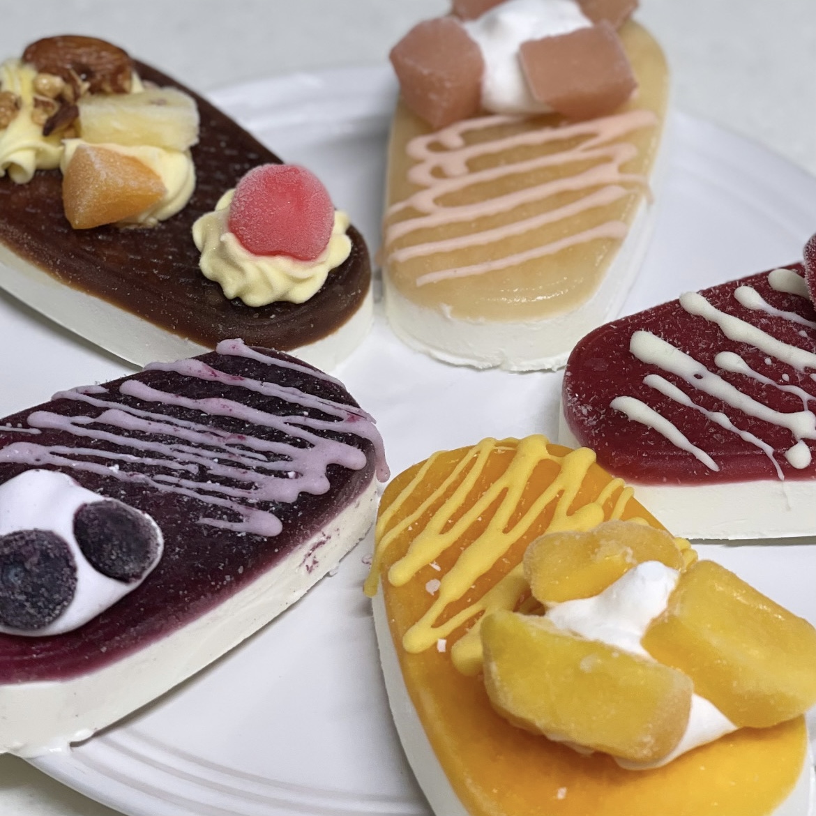 ショップで販売しているパフェやプリン・ア・ラ・モードをイメージした「アイスバー」です。「練乳いちごパフェ」をイメージしたパフェアイスバー「練乳いちごパフェアイスバー」、ヨーグルトのアイスクリームにブルーベリーソース、ホイップクリーム、大粒のブルーベリーをトッピングした「ブルーベリーヨーグルトパフェアイスバー」、プリン・ア・ラ・モードをイメージした贅沢な味わいの「プリン・ア・ラ・モードアイスバー」など5種。異なる味わいのセットなので食べ比べが楽しめます。専用ボックスに入って届くので贈り物にもおすすめです。