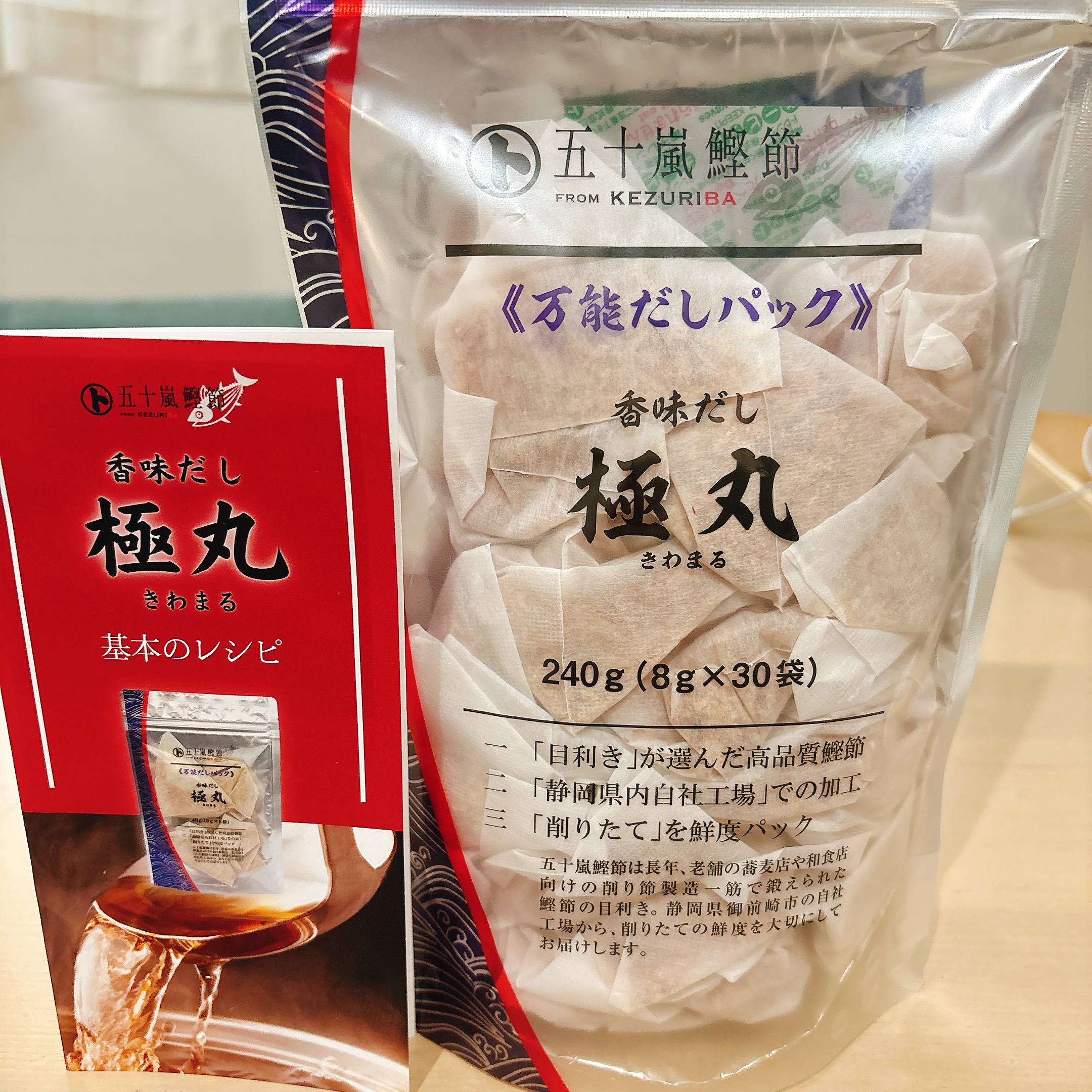 削り節製造一筋で培った目利きによって厳選した素材でつくった「だしパック」です。力強い香りと濃厚ですっきりとした味わいが特長の鰹荒節をベースに、うるめ節、さば節、昆布を合わせ、だしの旨味を最大限に引き立てています。自社工場で削りたてをすぐにパックすることで、天然素材の豊かな香りのまま届きます。家庭でも使いやすいよう、醤油や砂糖で味を整えてあるので、基本的には味付けは不要です。保存しやすいチャック付きパッケージです。