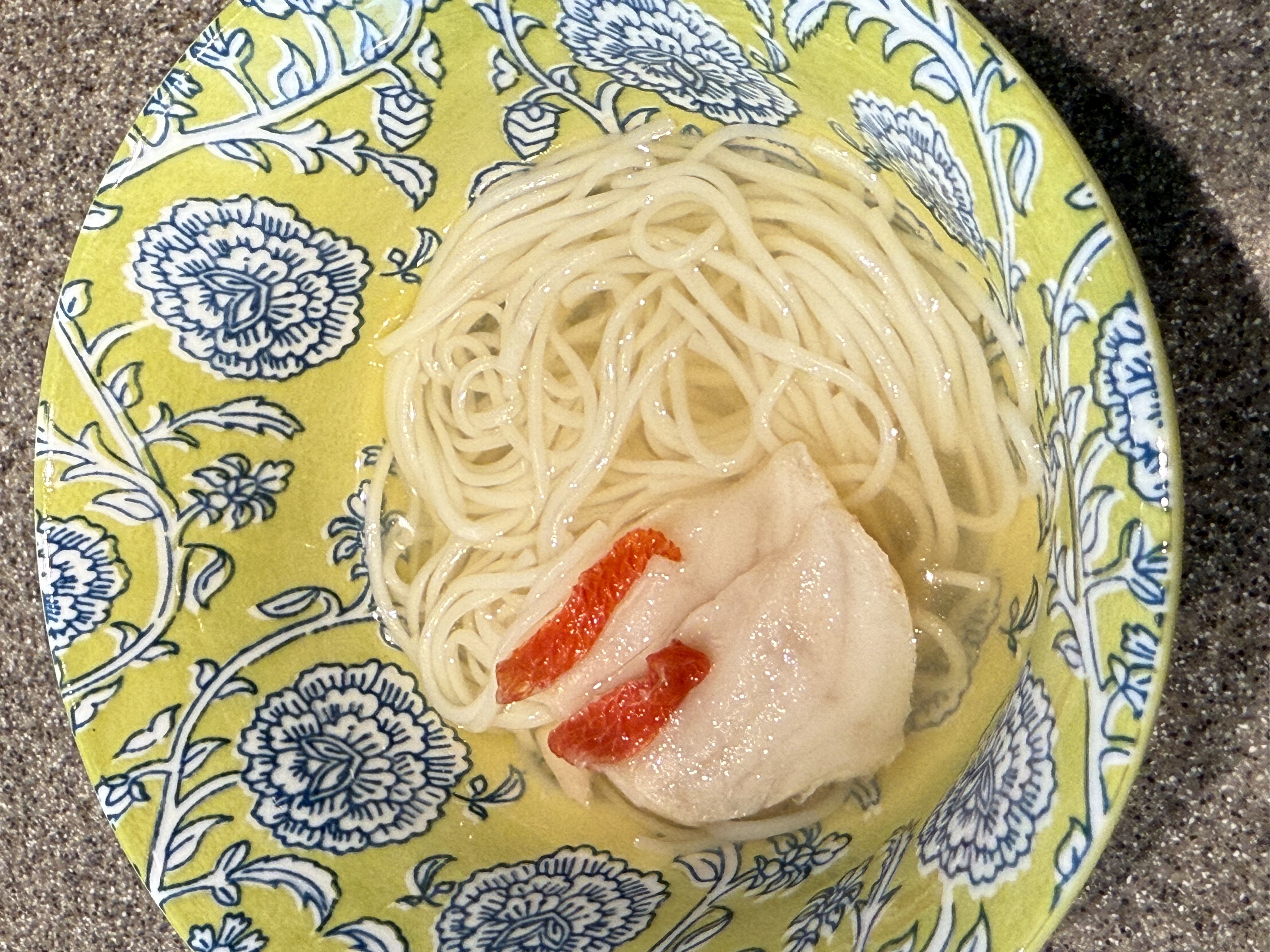 たっぷりのお野菜と一緒に人生初の金目鯛しゃぶしゃぶをいただきましたが、魚の味が引き締まっていて、かつふわっとした食感でとても美味しい…!生臭さも全くありませんでした。鯛本来の美味しさで上品な味わいでした。