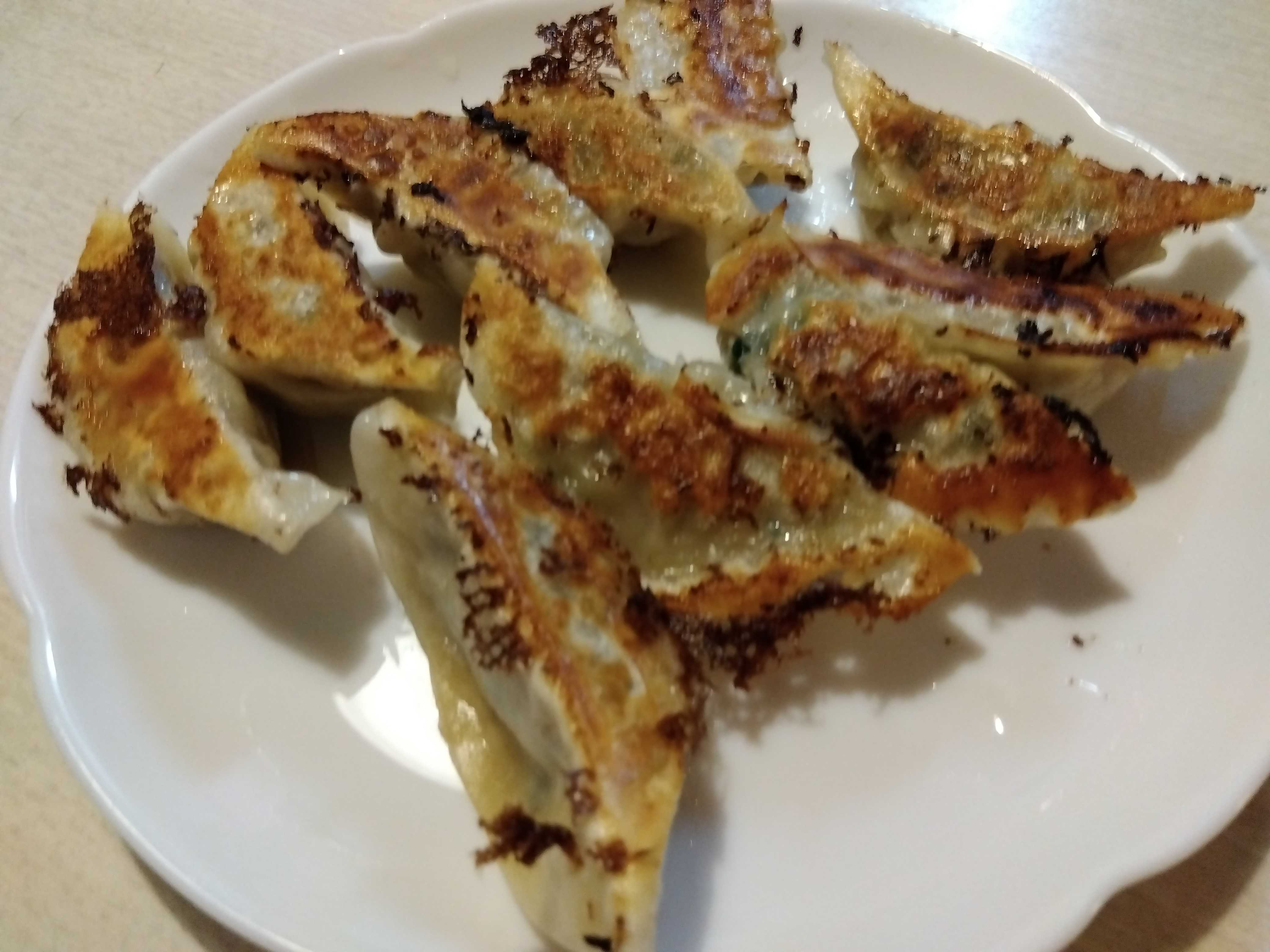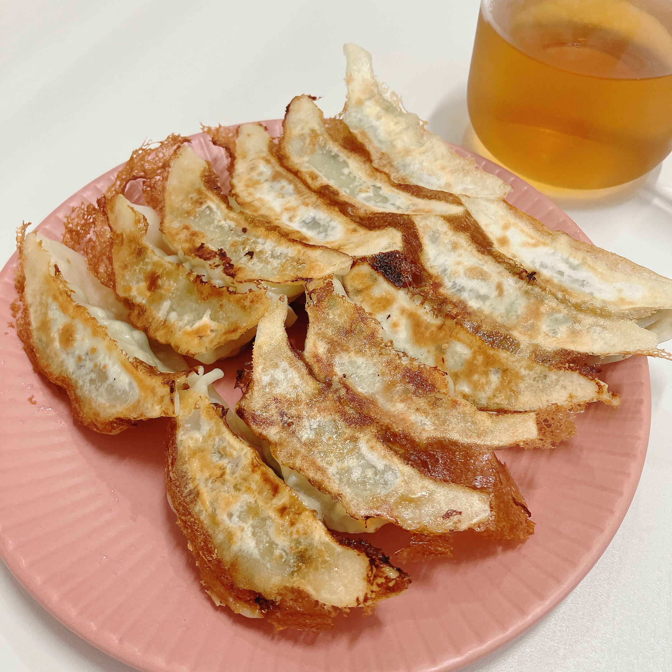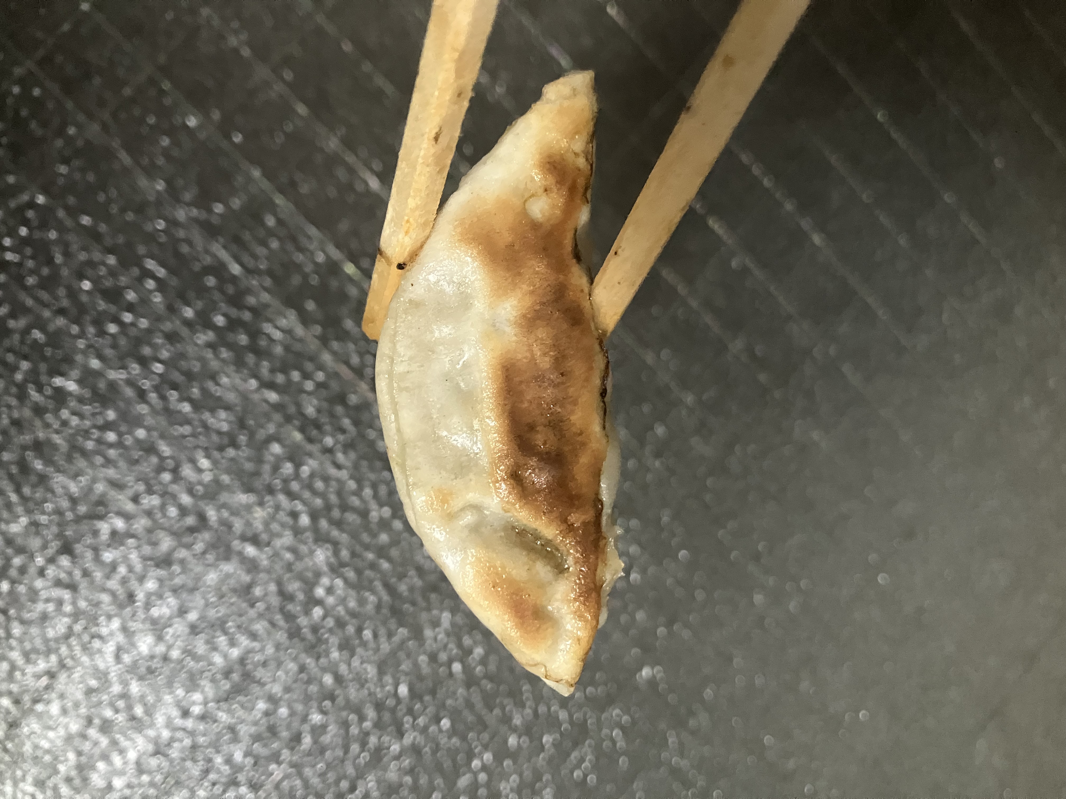 餃子の皮は薄めだけどモチモチで、焼き目がサクサク。