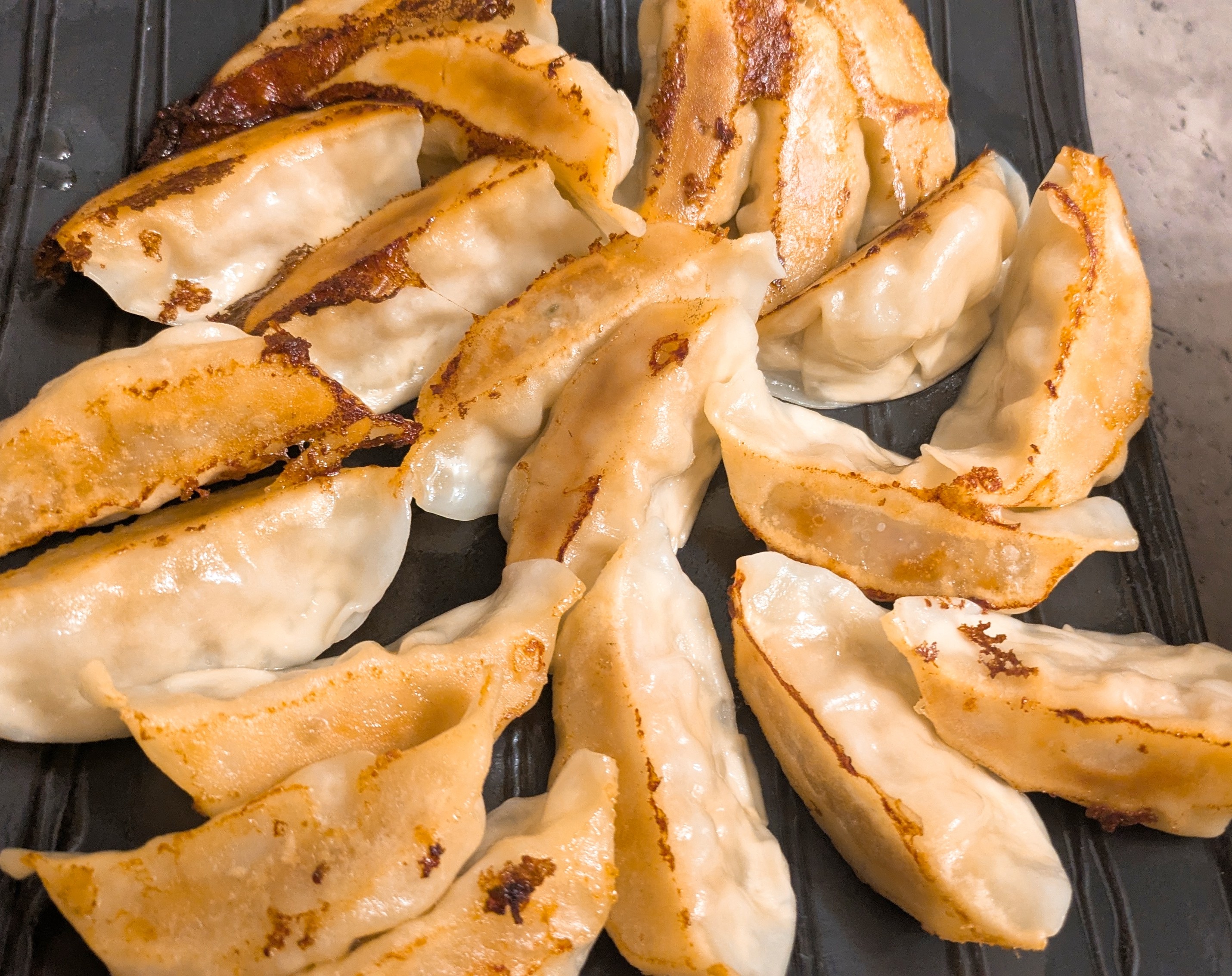 フライパンで説明書き通りに焼いてみると、焼き色のついた皮はパリッとしていてその他はとてももちっとしていて、食感も良くて食べ応えのある餃子だなと思いました。野菜のシャキシャキ感も感じられて脂っこさもなく、お肉の甘みも感じられるバランスの良い餃子だと思いました。
