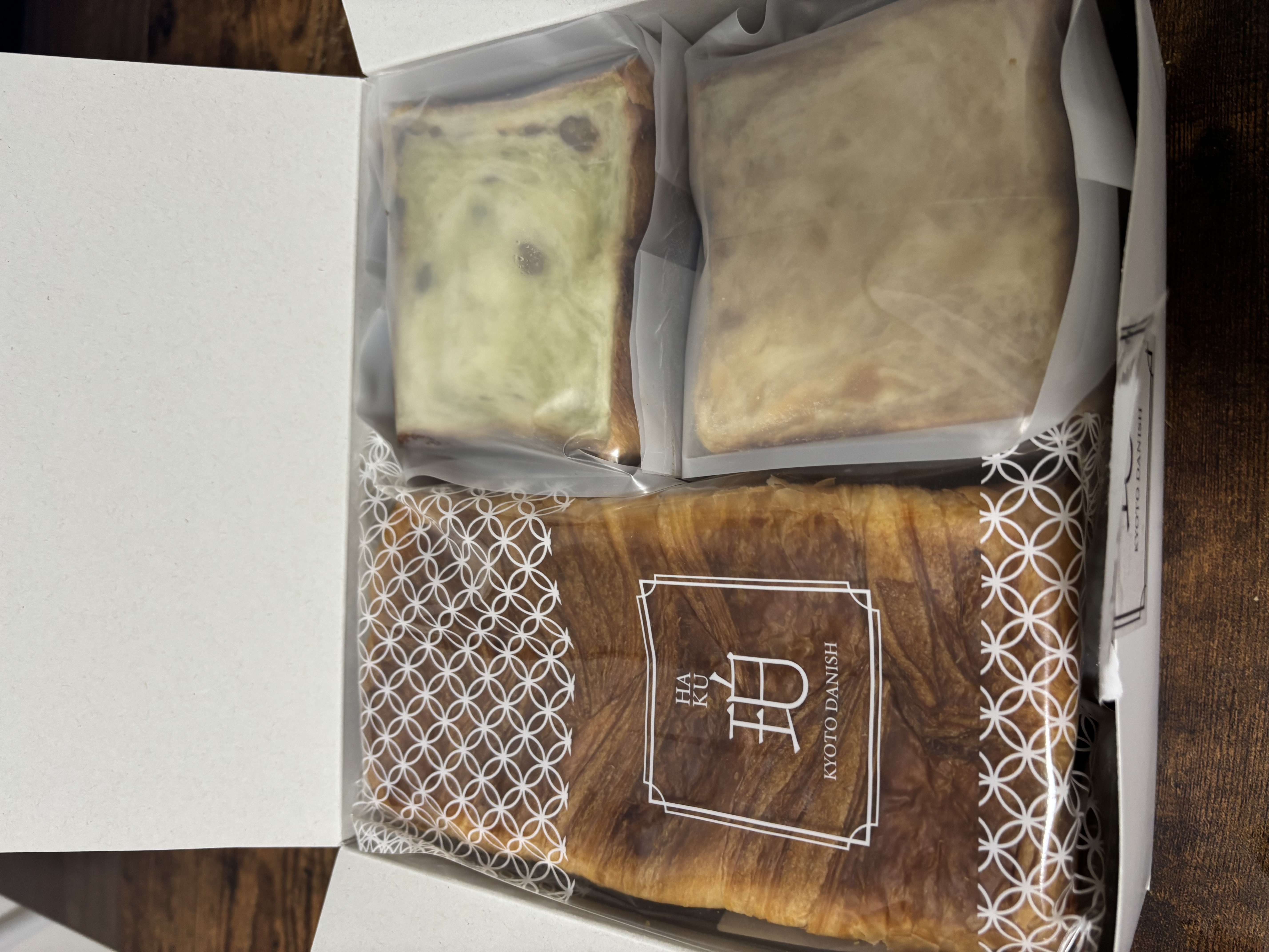 箱の中には3種類のデニッシュがきっちりと収まっています。