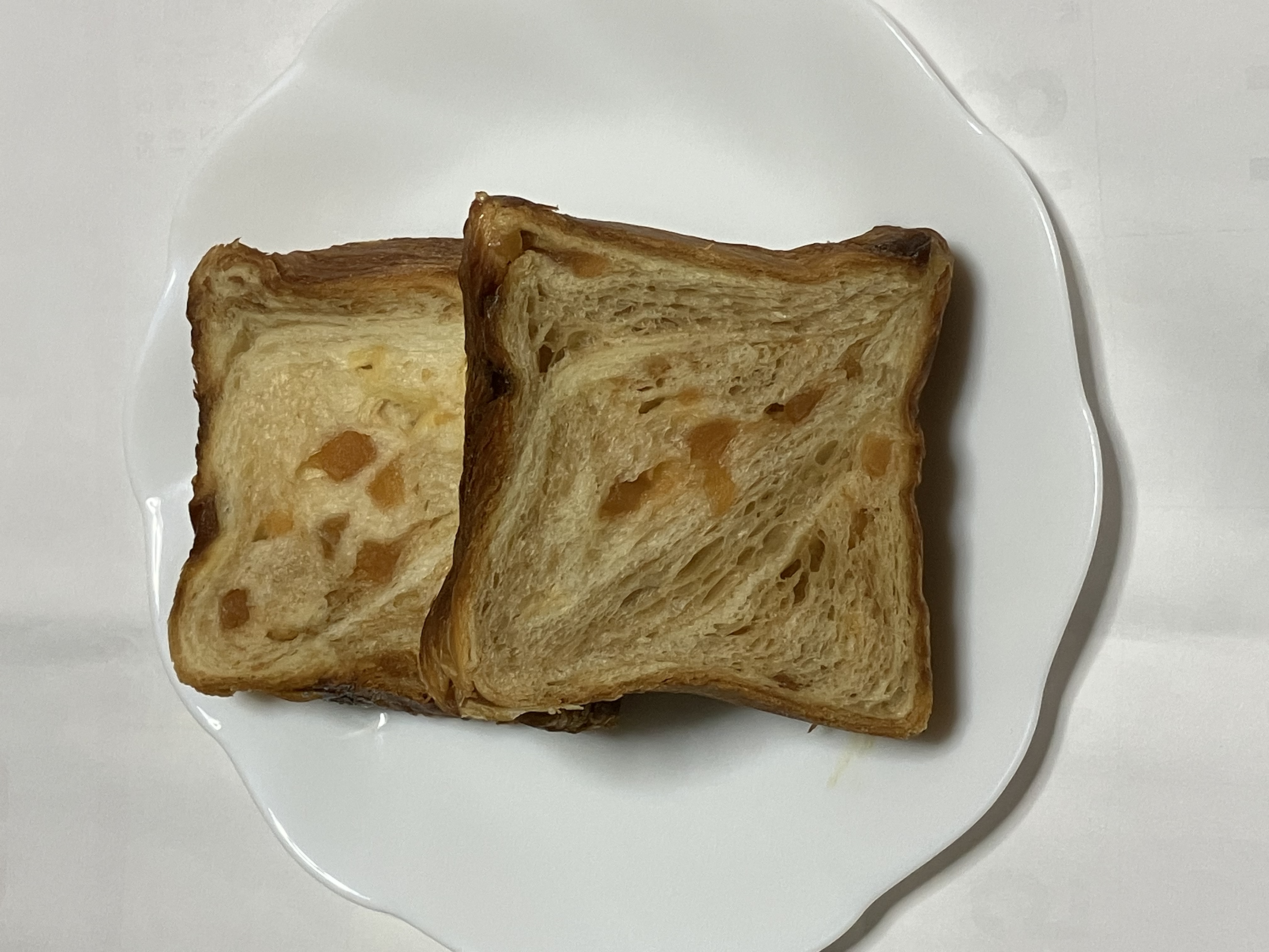 ほんのり焦げ目がつく程度トースター等で焼いて頂くと焼き立てのような香ばしい香りがただよい、表面はサクサク中はフワットした食感でおいしくなります。