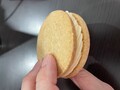 サクッとした食感の塩味のあるクッキー、口の中で溶ける優しい甘さのクリームがよく合います。ひとつで満足感があり、ティータイムにぴったりです。