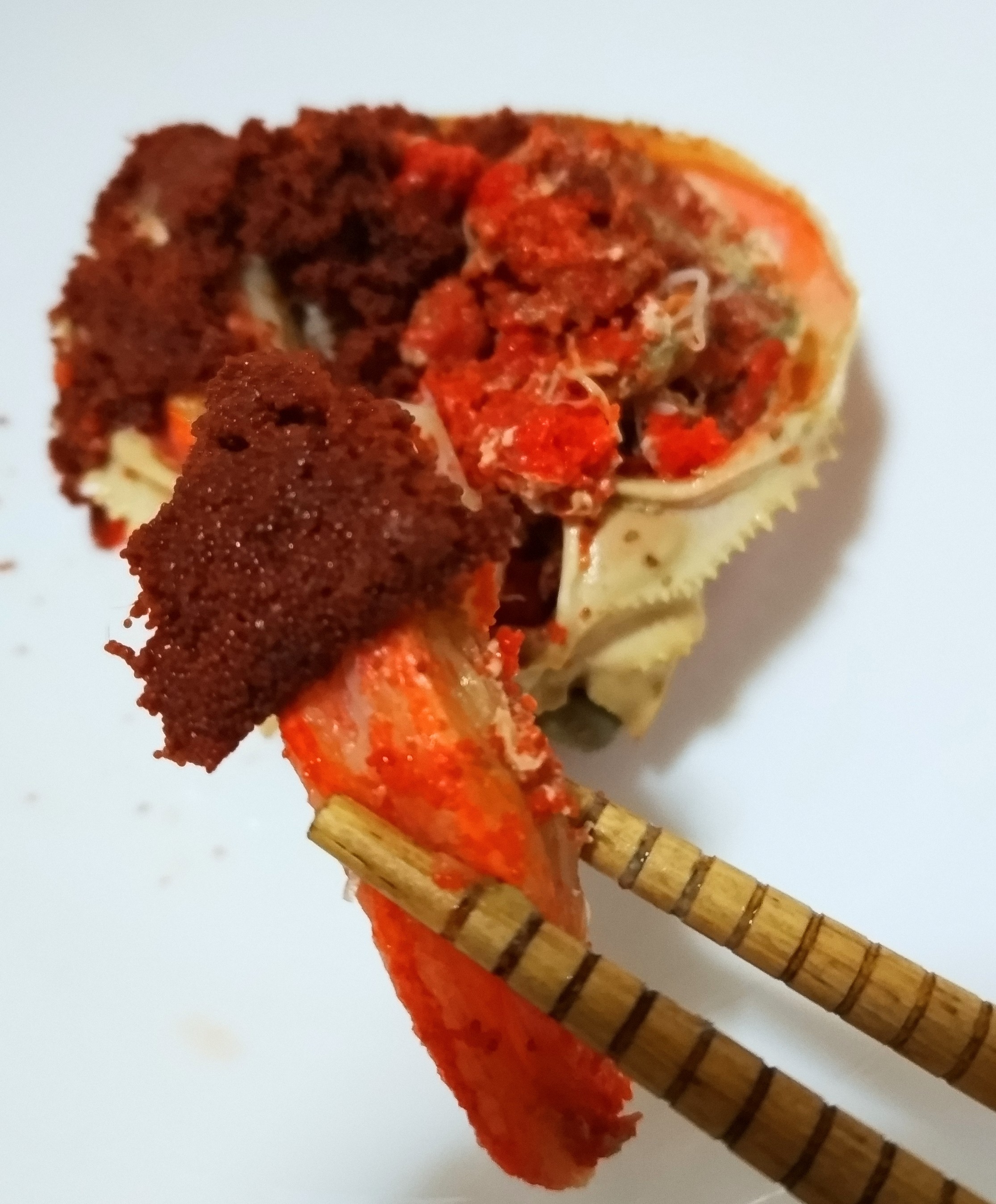 まず、身をほぐして甲羅にのせられた香箱ガニは、お寿司屋さんや高級な和食屋さんで、それなりな金額を払って食べるものと考えています。