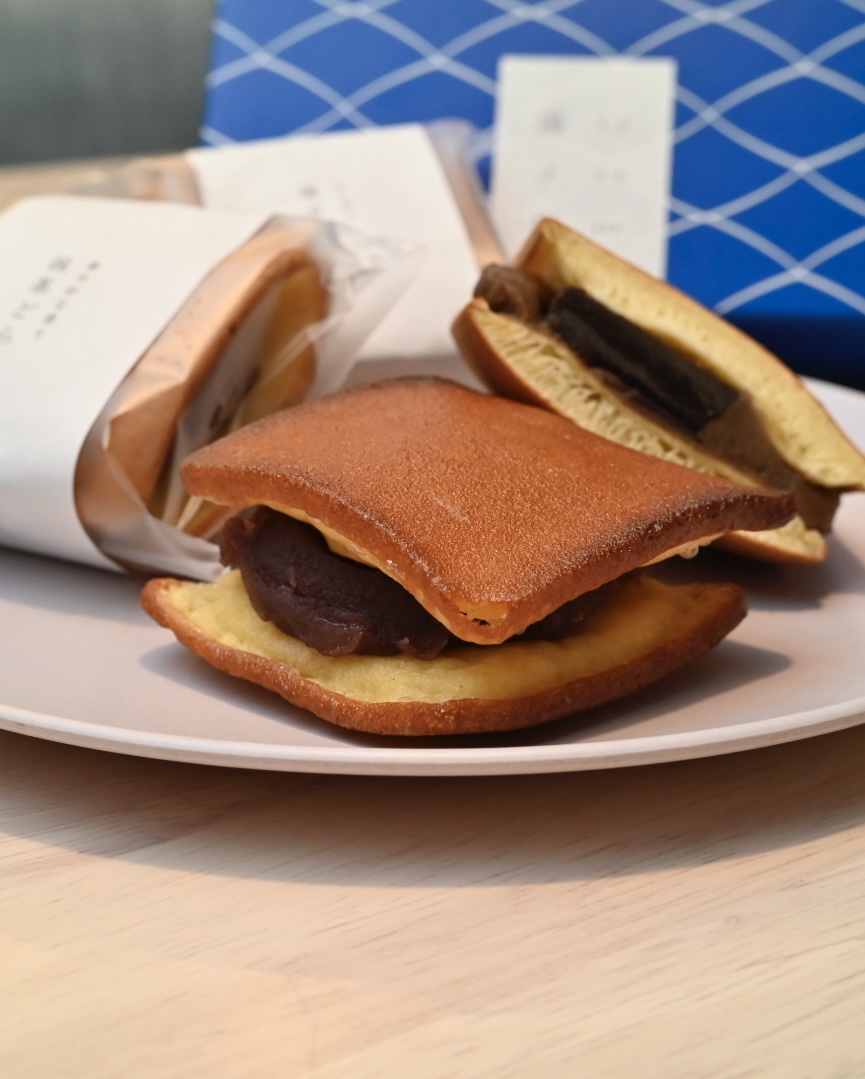 そのままでも香り高く、バターの甘さと粒餡のほのかな甘さが広がり「青輝」の上品な渋みが後を引くどら焼き。