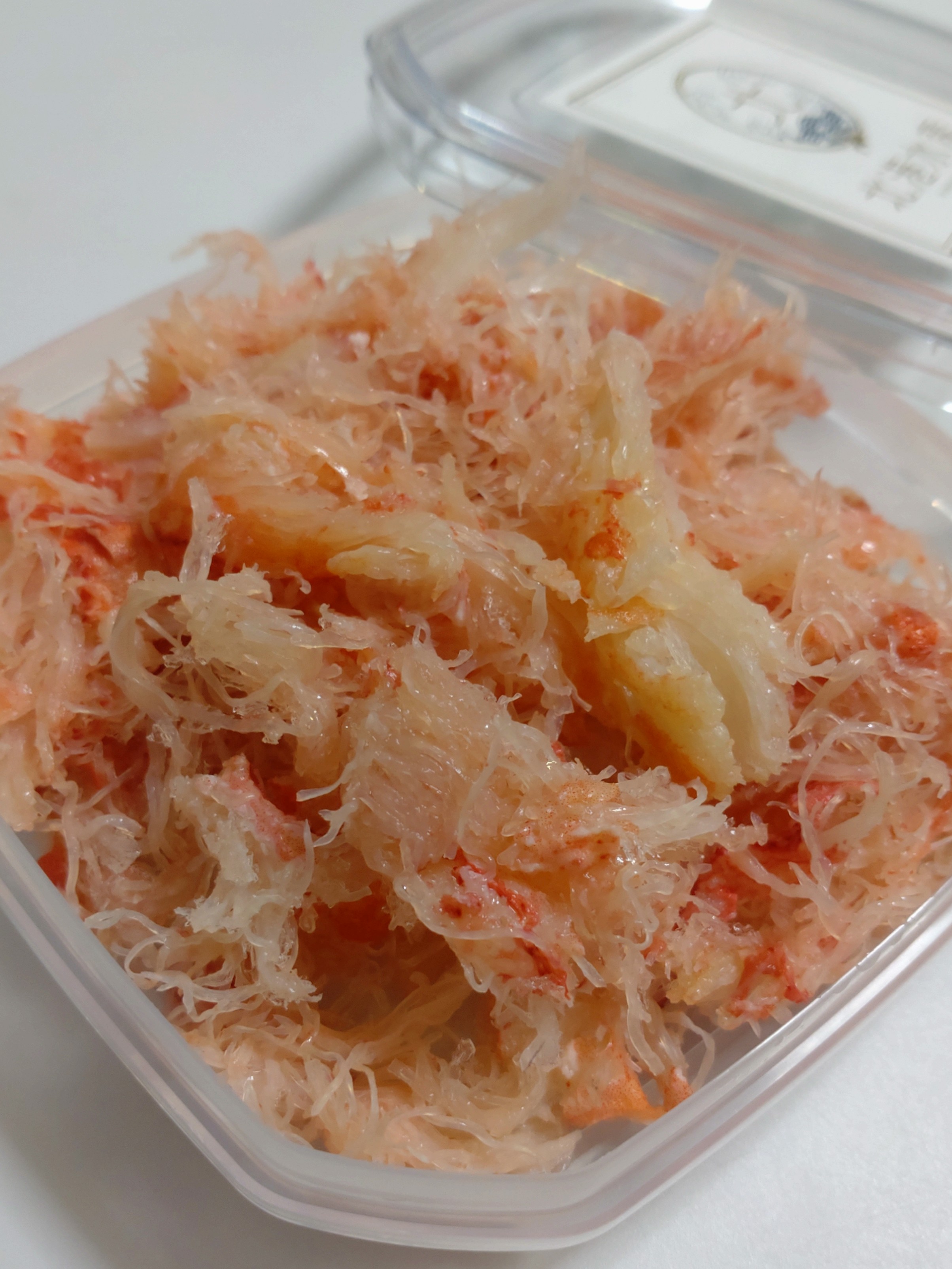 密封状態のため開けた瞬間にカニのいい匂いが広がり食欲がそそられました!まずは一口つまんで食べてみたところカニそのものの風味が感じられて期待を遥かに超えてきました。
