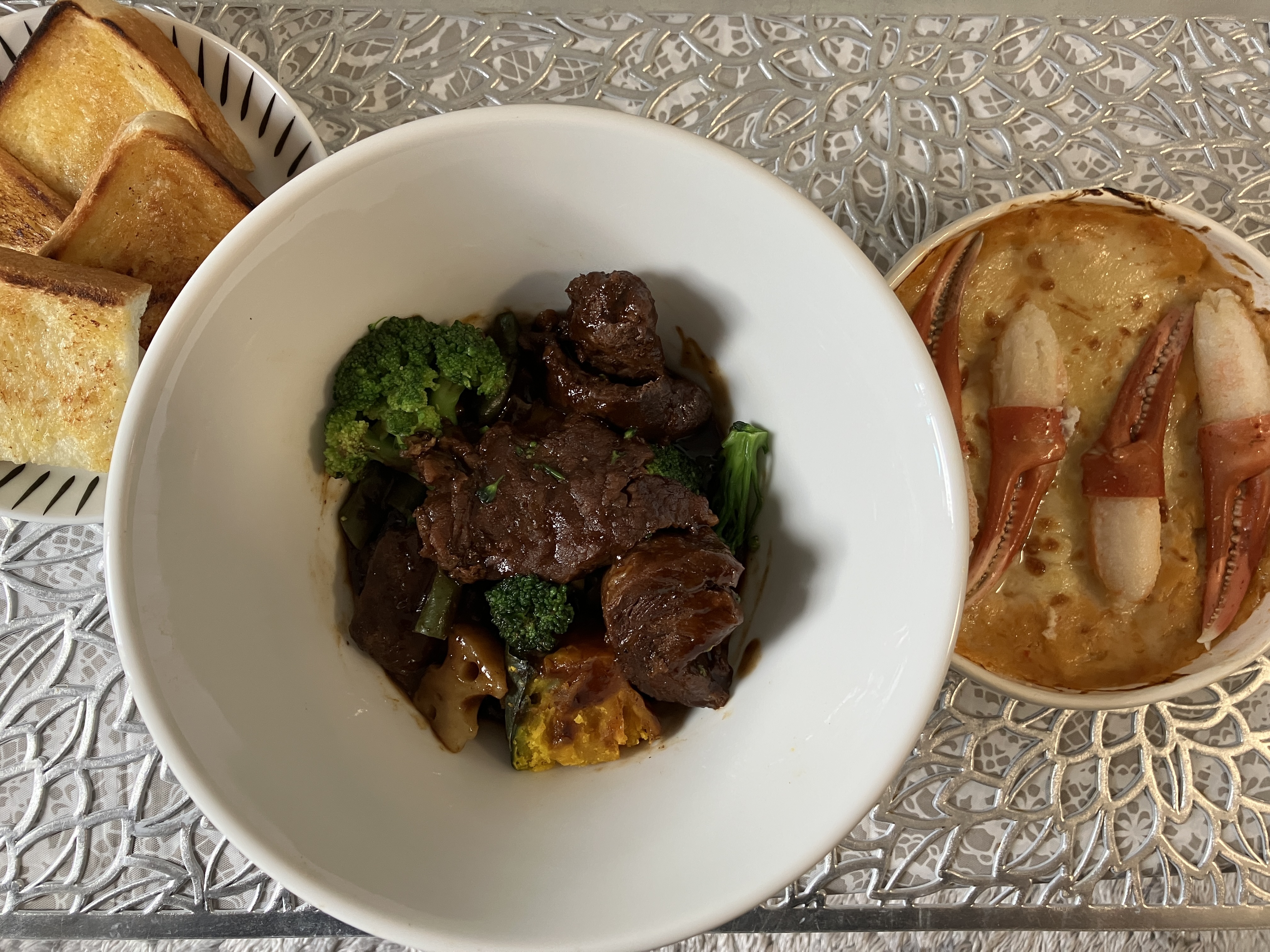 赤ワイン煮込みのシチューです。付け合わせの野菜も入っていて彩りも綺麗です。ごろっとしたお肉がこんなにも!というほど入っています。赤ワインの旨みが凝縮されたソースで大人の味わい。濃いめのコクのあるソースと食べごたえのあるお肉でとても満足感があります。