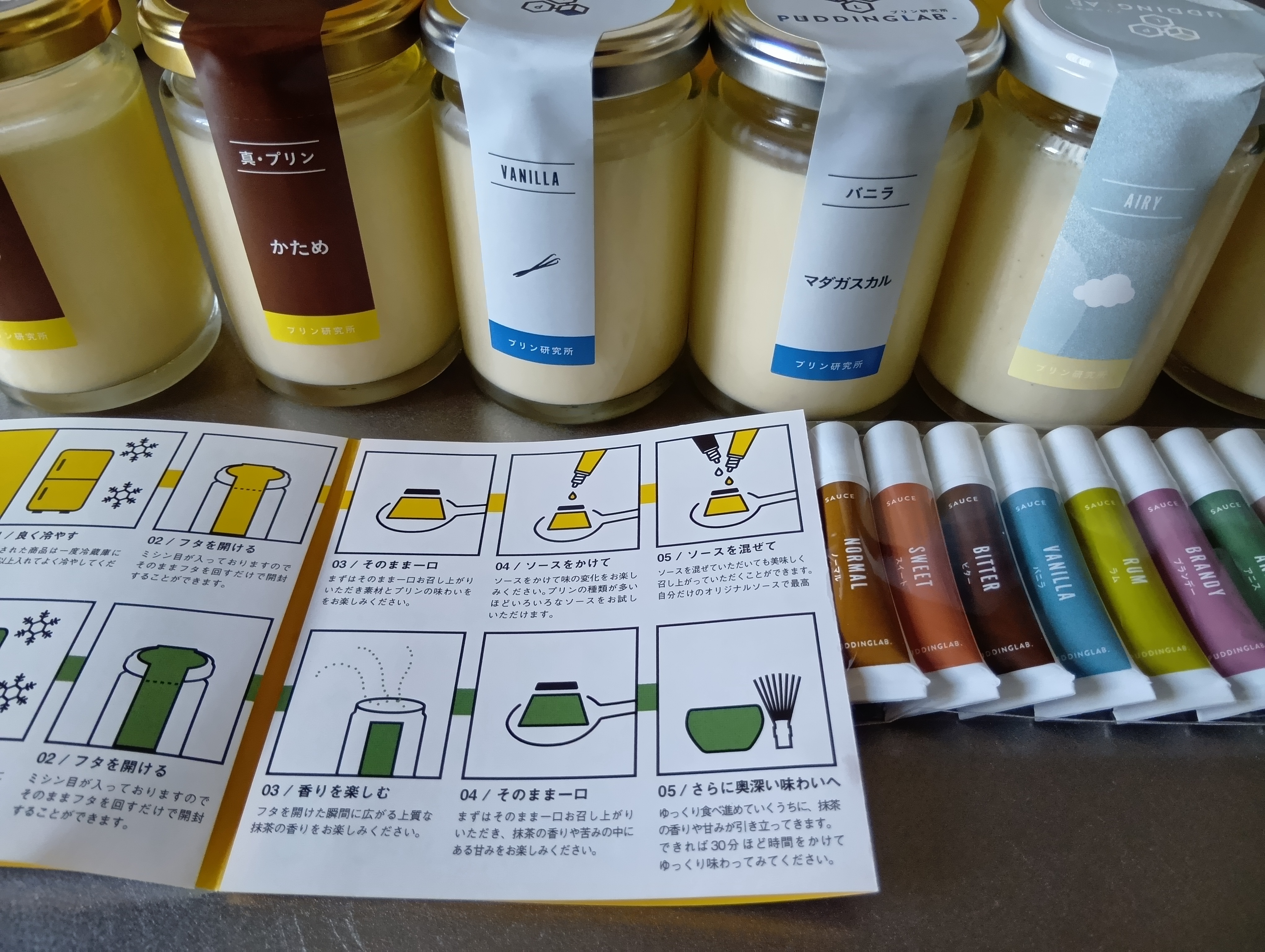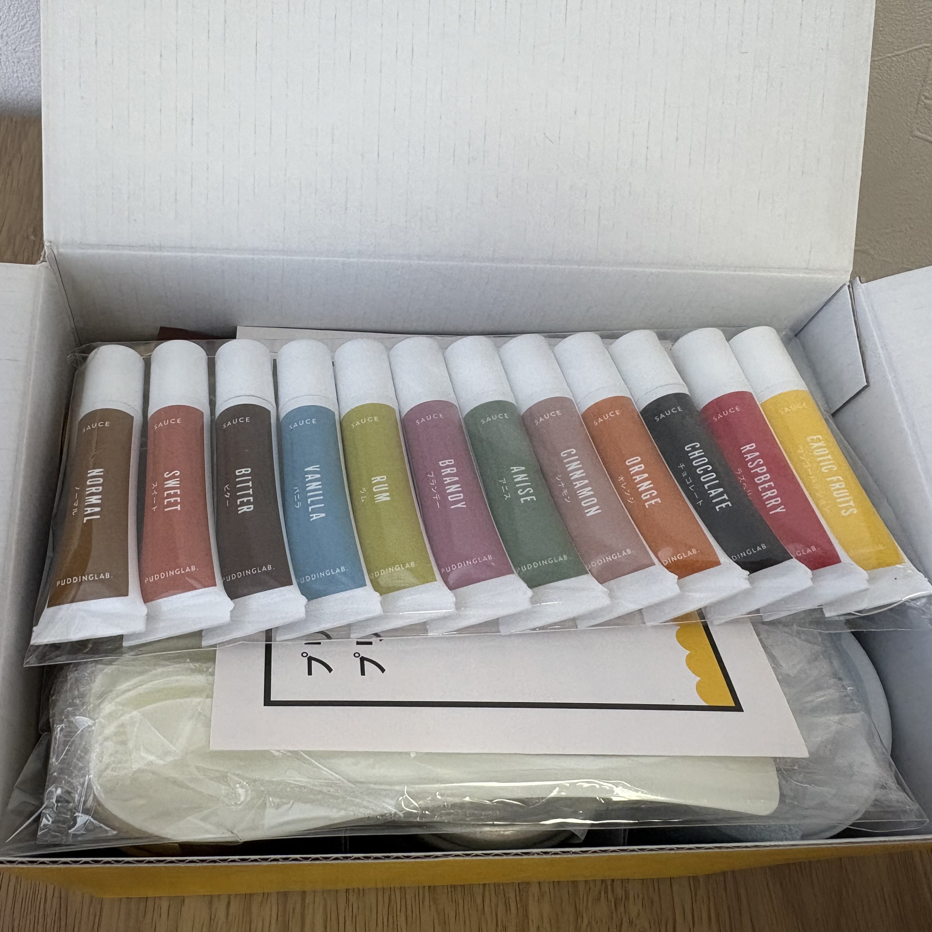 ソースが12種類あるので、同梱の相性表を見ながら、いろいろな味を楽しんでいただき、プリンの歴史・進化を感じながら、友人やご家族と楽しんでいただければと思います。