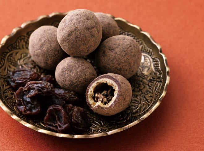 芳醇なレーズンを、さっくりとした⾷感の生地で包み、マダガスカル産カカオのビターチョコレートで丁寧にコーティングしました。マダガスカル産カカオは、ベリーのような赤い果実の酸味と、シトラスを思わせる爽やかな香りが特徴。その透明感のある風味に寄り添うように、レーズンの甘みと軽やかな食感が重なり合います。