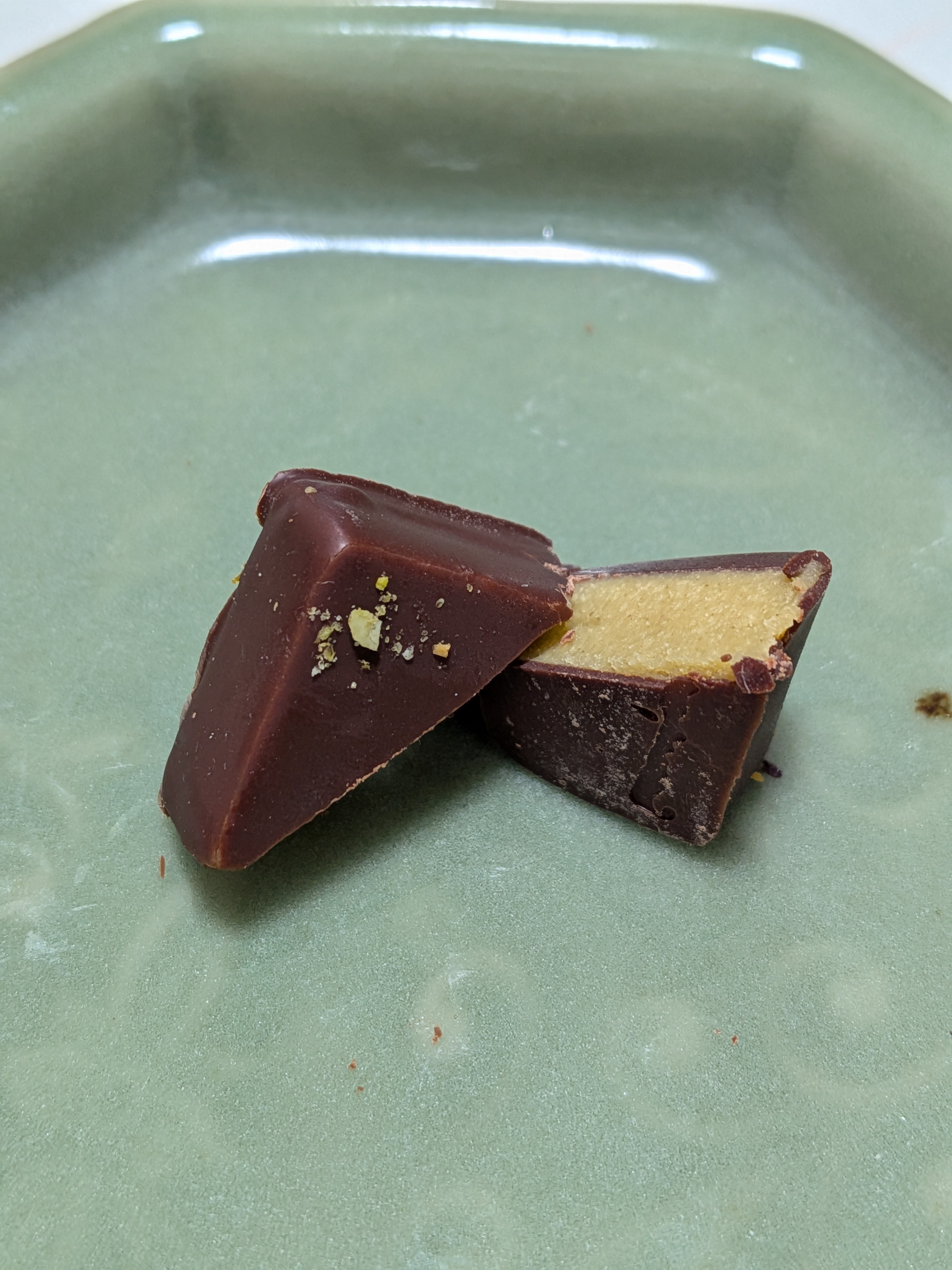 中でもピスタチオの存在感が際立っていて、香ばしさとやさしい甘みがチョコレートと溶け合い、一粒ごとに小さなご褒美のような幸福感を運んでくれます。